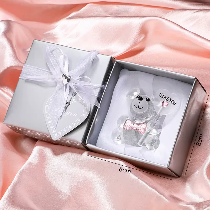 The "Valentines Day Gift I Love You Crystal Bear" is a crystal bear figurine designed for Valentine's Day. It serves as a sentimental gift to express love and affection. Perfect for adding a touch of charm to floral or home décor, this crystal bear would make a lovely addition to any home or garden setting.