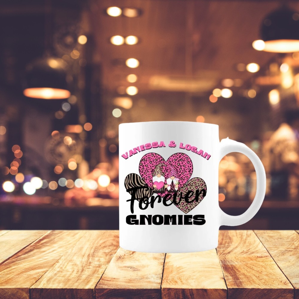 Valentines Day Gift Mug - Gnomies Forever Personalized Couples Coffee Cup