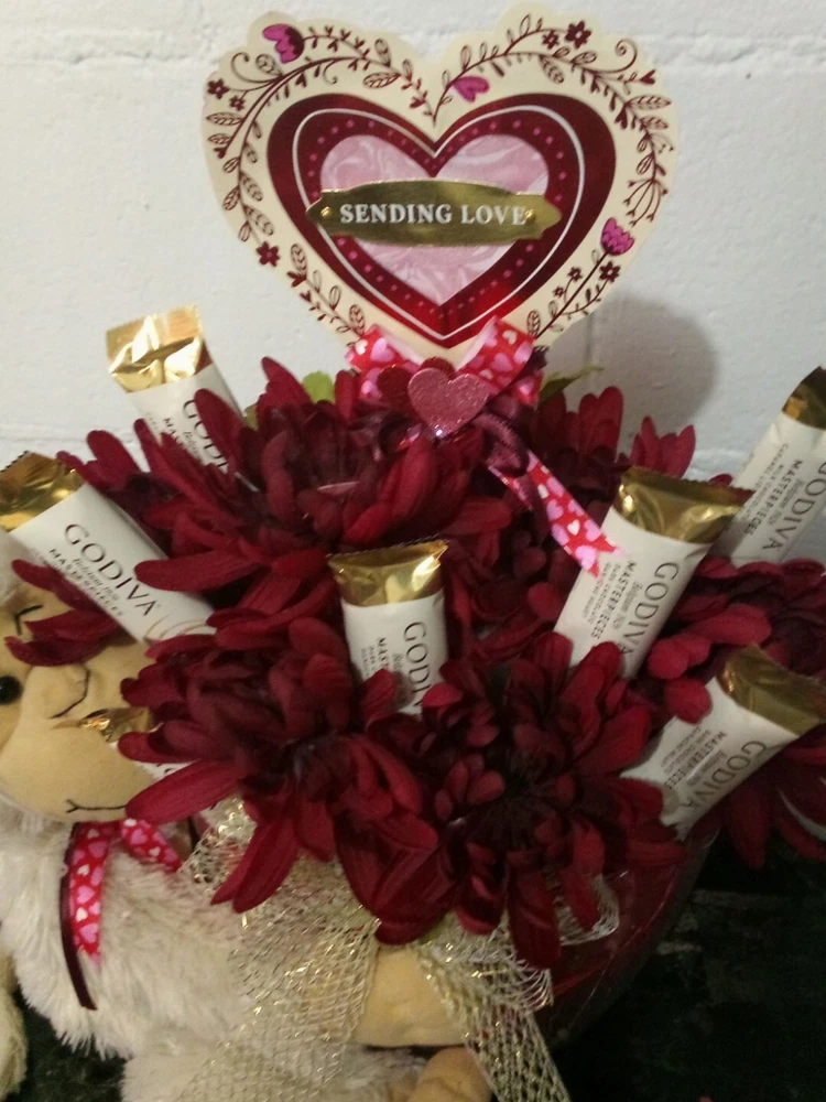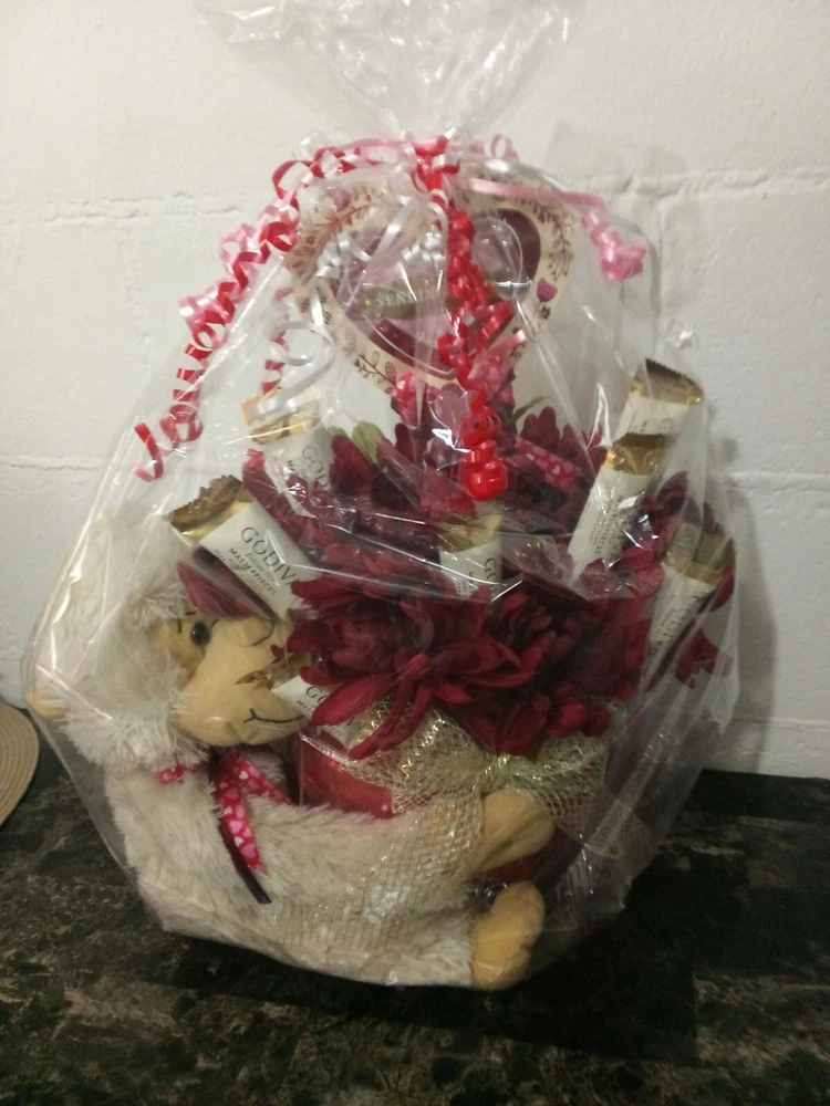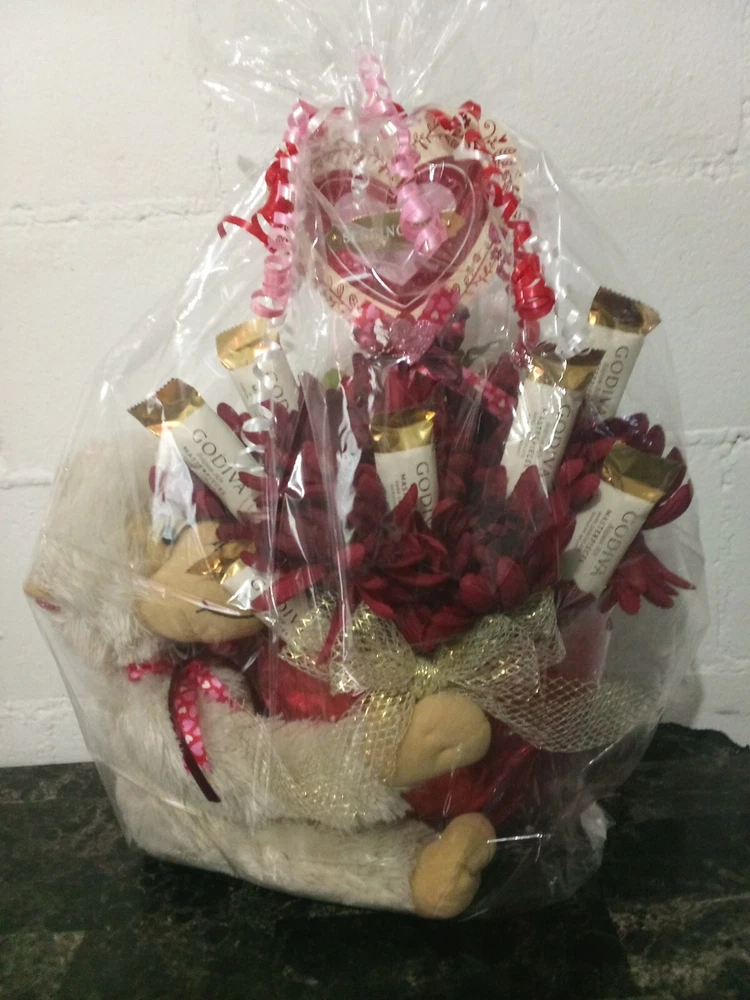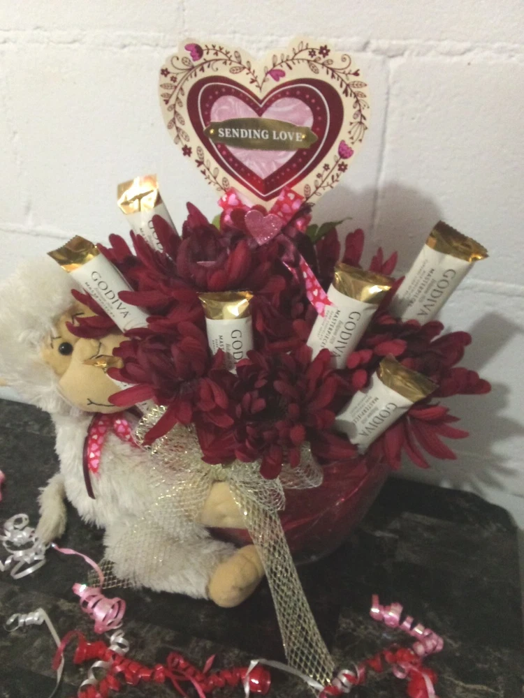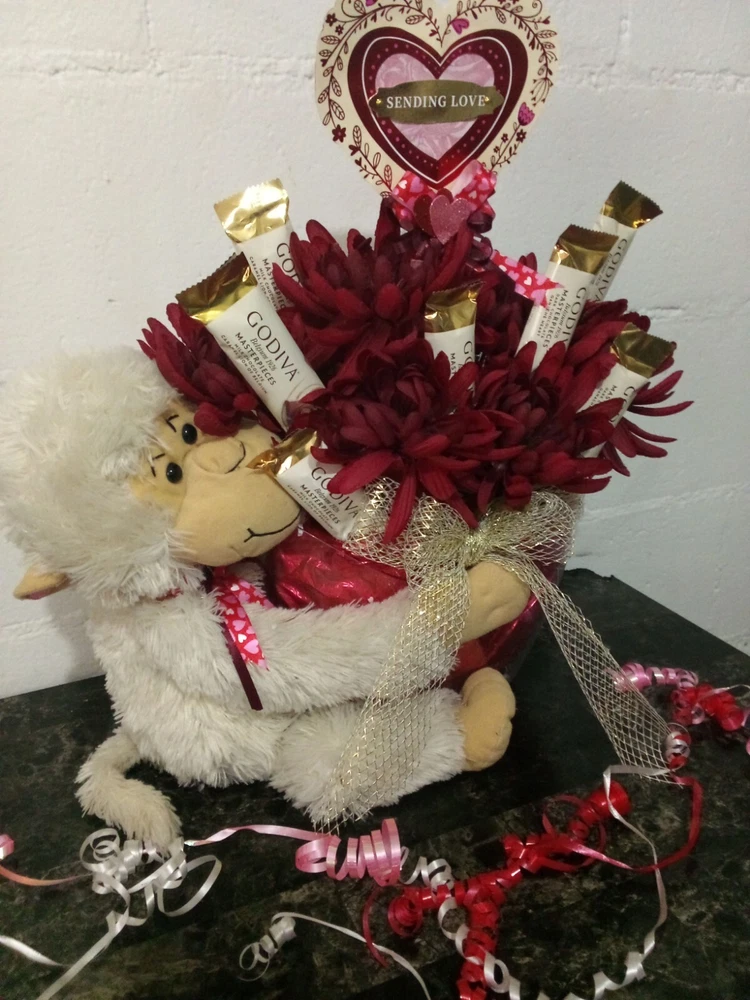 Department: Adults Occasion: Valentine's Day Personalize: Yes Recipient: Multipurpose Character: monkey Brand: Handmade Filling: Flowers, Chocolate, Godiva Vintage: No Country/Region of Manufacture: United States Antique: No Type: Gift Basket Color: Multicolor Theme: Hearts