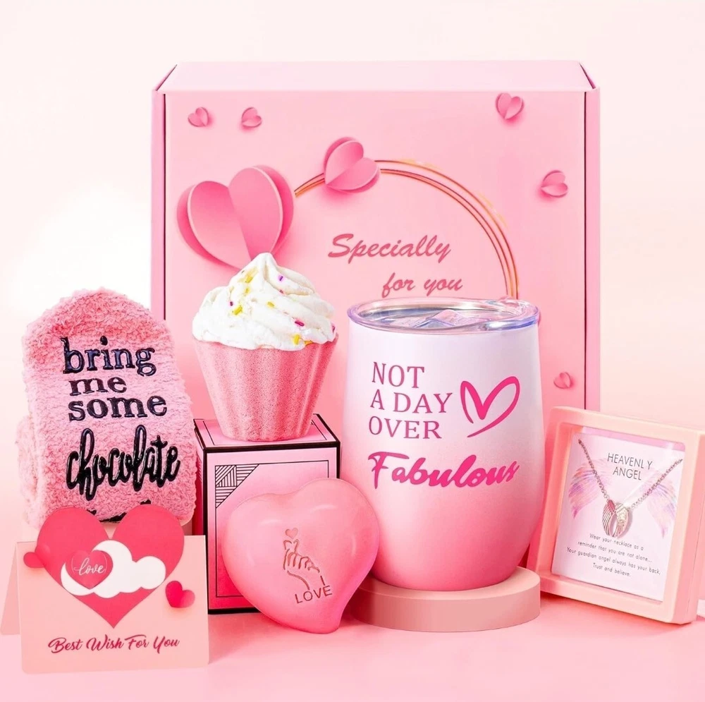 Surprise your girlfriend with this beautiful Valentine's Day gift basket! Featuring a wine tumbler, bath bomb, candle, socks, and two free gifts, this basket is sure to make her feel loved. The pink color and romanticism style make it perfect for the occasion, and the production technique of pottery adds a unique touch. With a theme of Valentine's Day and an occasion of birthday, this gift basket is ideal for any woman, especially those who love cosmetics and balloons. The character family of "Mom" adds a sentimental touch, and the department of women ensures that this gift is tailored to her interests.