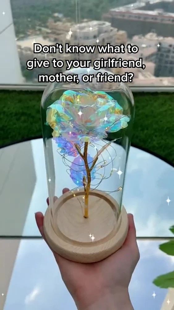Valentines Day Gift for Girlfriend Eternal Rose LED Light Foil Flower in Glass C