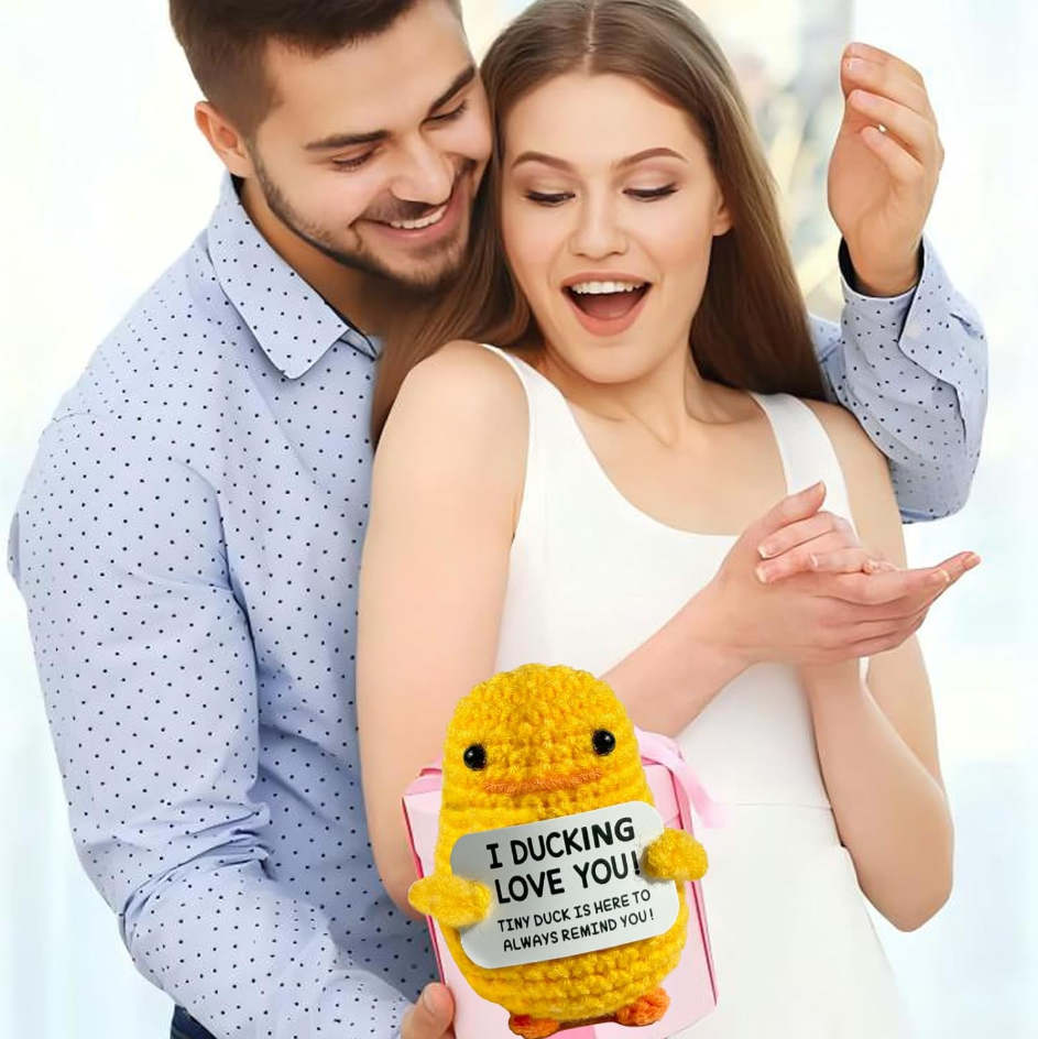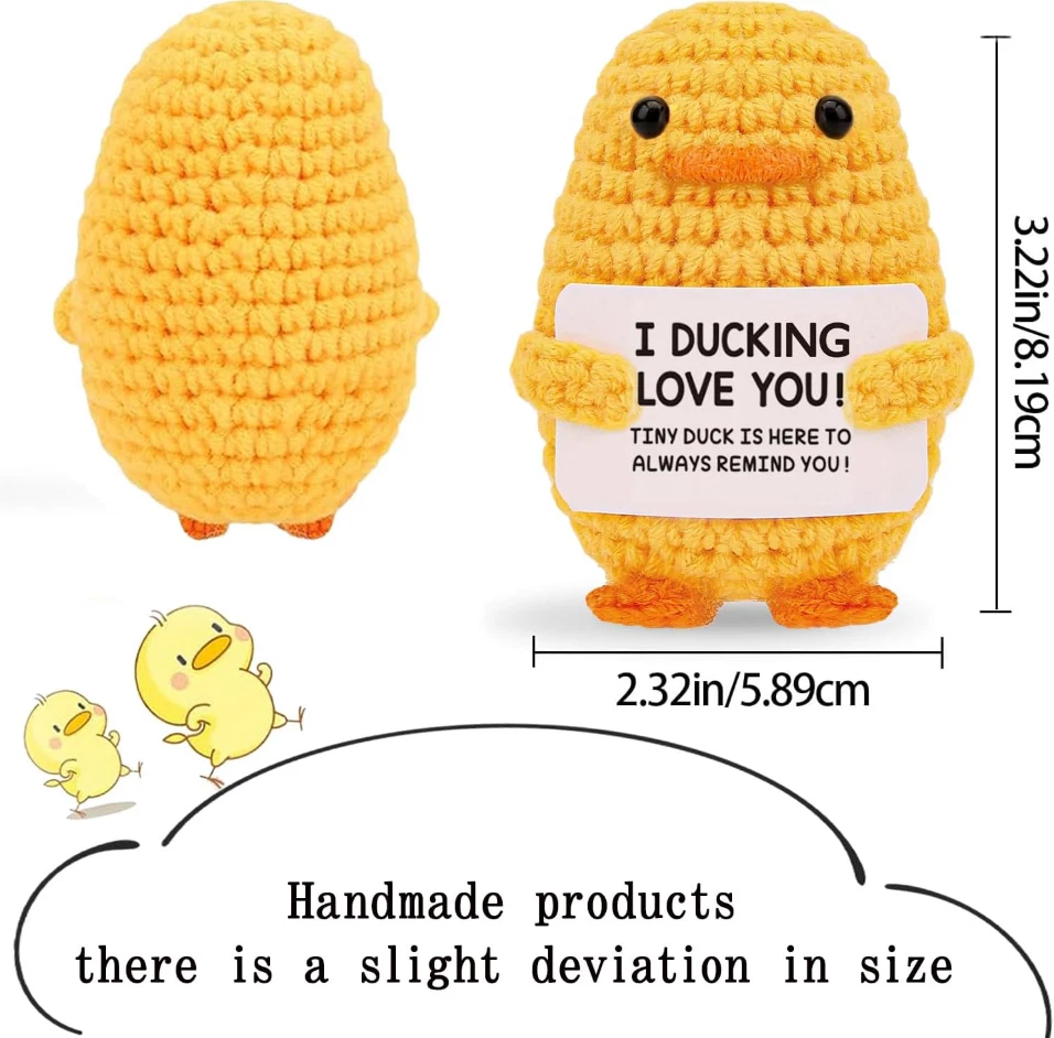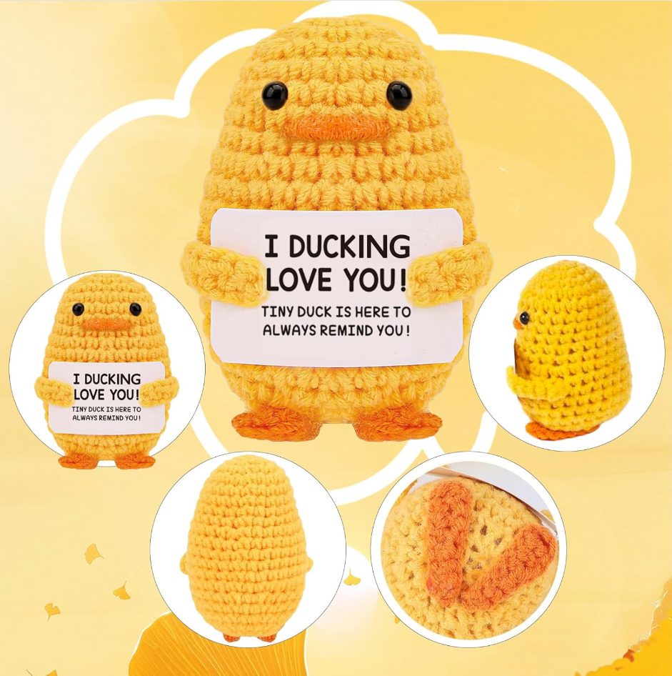 Gifts For Women: You will receive 1 piece of funny positive duck a card with encouraging words. This card is stuck on the positive duck doll. Positive Crochet Animals: The funny duck with "I Duck Love You",Ideal gifts for birthday,graduation,Mother's Day,Valentine's Day, Christmas,Anniversary Day,This duck will Bringing surprises and laughter to everyone. Material: The duck is made of premium quality wool yarn, lightweigh and comfortable to hold in the hand,bringing you a good mood for the whole day. Size: 3.14 x 2.36 inches, these crochet ducks are compact and fit perfectly in pockets or backpacks,you can take it anywhere you want to go and share this positivity with others. Stress Relief Gift: When the everyday stresses of work, life, traffic or a source of laughter during work time, these positive ducks are here to lend a hand.