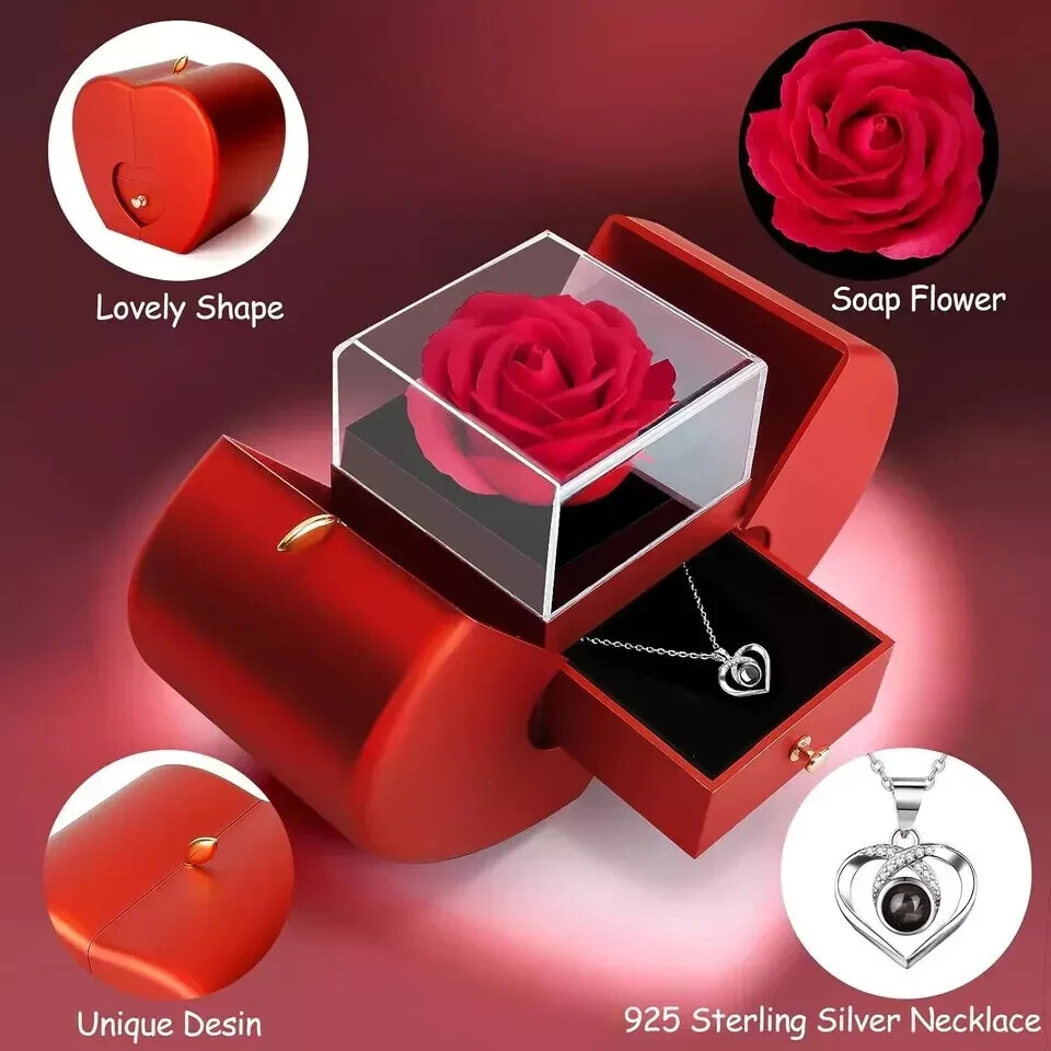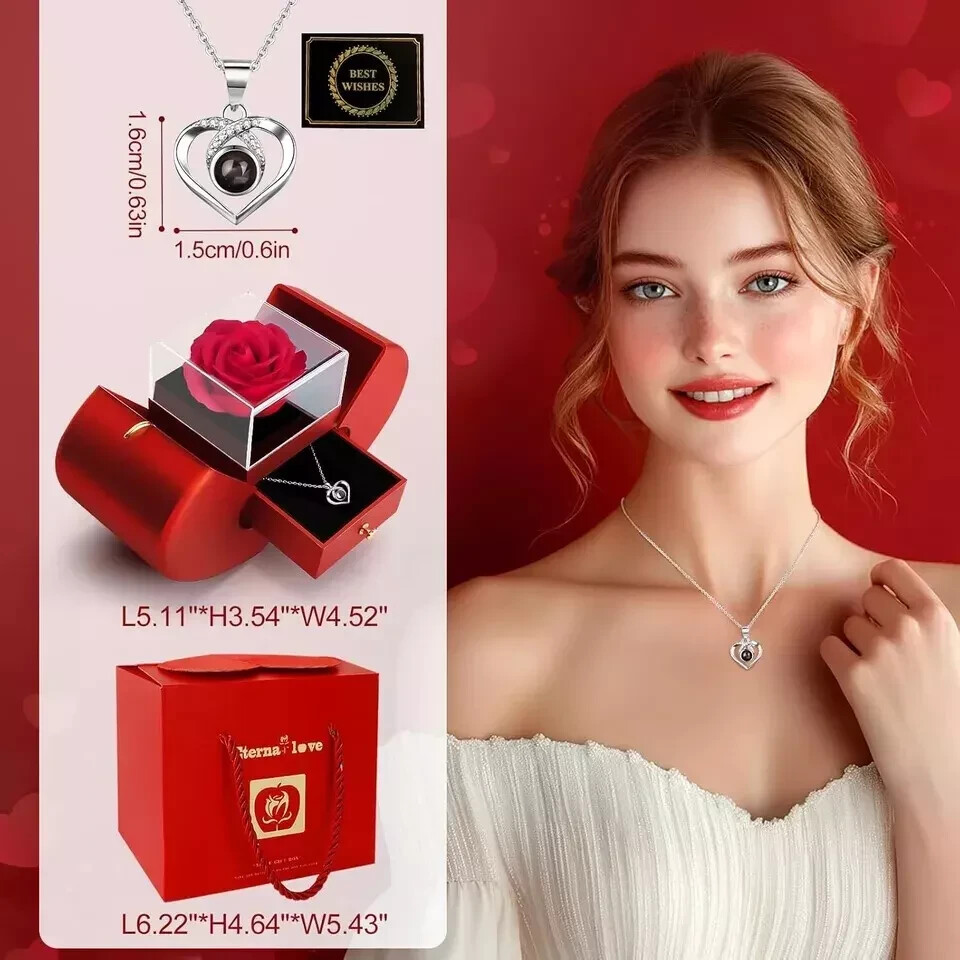This beautiful preserved rose necklace set is such a romantic and thoughtful gift! The real rose never fades, symbolizing eternal love, and the delicate "I LOVE YOU" necklace adds a sweet personal touch. It comes in an elegant gift box with a customizable card, making it perfect for Valentine’s Day, anniversaries, or just to show someone how much you care. The rose stays fresh for years without any maintenance, so the love lasts as long as the keepsake. Definitely a heartfelt present she’ll treasure!