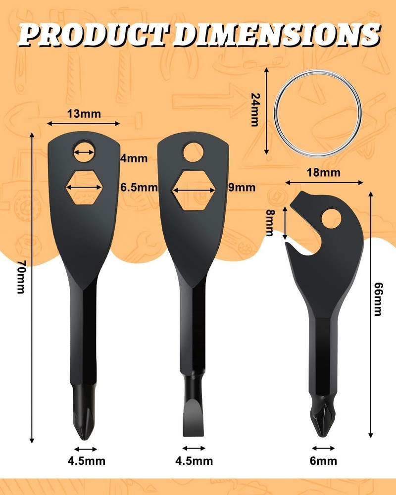 Free eBay listing template designed by dewiso.com Stocking Stuffers for Men Adults, 6-in-1 Keychain Screwdriver Bit with Phillips,Slotted and Hex Wrench, Christmas Gifts for Men Husband Dad Boyfriend, Multitool Accessories FREE AND FAST SHIPPING! About this item đ ăStocking Stuffers for Men Adultsă - This multi-key chain screwdriver is definitely a perfect gift. It combines the most commonly used screwdriver and nut shapes and can be given as a gift to your father, husband, boyfriend, relatives, friends, classmates, teachers, students, DIY enthusiasts, etc. Christmas, Valentine's Day, Father's Day, graduation, wedding anniversaries, birthdays, retirement, etc. đ ă6-in-1 Designă- Our multi-functional screwdriver set includes 1 slotted drill bit, 1 cross drill bit, 6.5mm Allen wrench and 9mm Allen wrench, and a beer bottle opener. The 6-in-1 design meets your various needs and helps you solve all kinds of emergency repairs and other maintenance in daily life. đ ăLightweight and Practicală- The compact size and light weight make this pocket screwdriver very easy to carry. There is a round metal ring for you to string the screwdriver and the key together. Then you can use it anytime and anywhere, especially outdoors where it can help you solve urgent problems. đ ăHigh Quality and Durability ă- The screwdriver is made of precision cast steel and has undergone heat treatment, making it stronger and more resistant to bending. The surface is treated with high-chromium, effectively preventing rust and corrosion, and greatly extending the service life. đ ăWide Range of Usesă- 6 different types of tools can easily handle most repair or disassembly work. It is highly suitable for the maintenance work of furniture, electrical appliances, machines, equipment parts, wood products, game consoles, laptops, electrical equipment, etc. and is also applicable to some outdoor scenarios. Product We offer a 30-Day Return Policy on items which you are not completely satisfied with. You have the option for a full-refund or an exchange of the item. No returns are available on items shipped outside of the US . Shipping We offer Free Shipping to the US and ship within 2 business days of payment, usually sooner. We use UPS express shipping. That's why your products are usually delivered within 3 days . Contact We try our very best to make sure every customer is completely satisfied. If there's a problem , message us! We're happy to help. 24/7 live chat available.