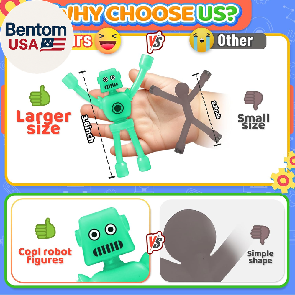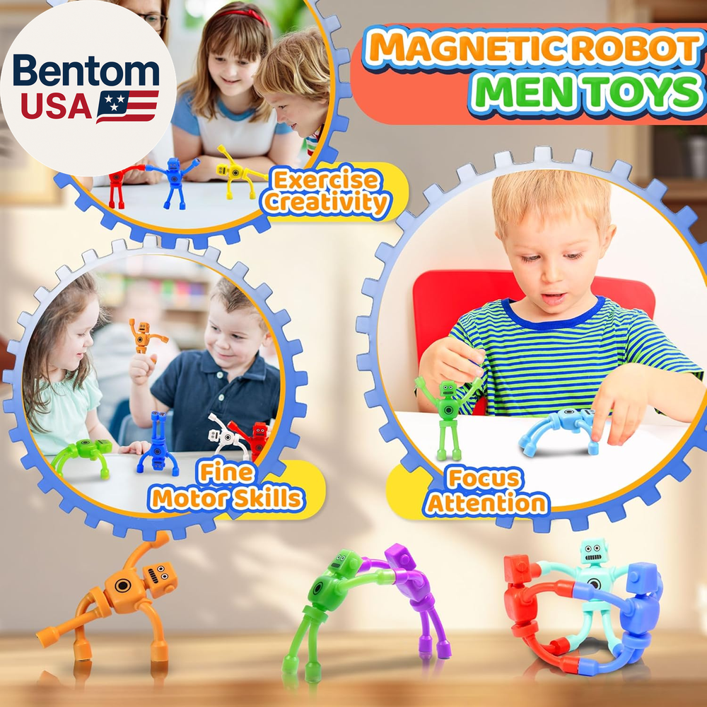 [Magnet Fidget Toys] Magnetic men toys, in robot form, come in 5 bright colours such as red, green, blue and purple, which can be glued to metal surfaces and DTY into various shapes to stimulate children's imaginations while travelling and entertaining well be best 2025 sensory fidget toy for toddlers, kids and adults. Gifts for boys and girls 3 4 5 6 7 8 year old [Cool Fridge Magnetic Robot Men ] The robot refrigerator magnet fidget is designed with elasticity and flexibility, lightweight, flexible and bendable, the magnet is wrapped around the toy's hands and feet, with a strong magnetic connection, safe, reliable and durable for toddler toys and kids toys [Travel Toys Essential] This toddlers travel activities toy is small, silent, portable and can be played with anywhere. This quiet magnetic people fidgets toy is a must-have travel toy to keep your child busy and entertained, this a great restaurant toys, airplane/plane toys, car toys, road trip activities essentials toys for age 2-4 [Fun Toddler Toys & Kids Toys] This magnet toy, not only can be used as fidget toys for toddlers kids adult, but also can be used in various life scenarios, for example, it can be used as a fridge magnet, adsorb small objects, convenience stickers, decorating the fridge classroom! You can also bring it to the office to play, as a pen holder, or stick it on the whiteboard, cool locker decoration and so on. Make your study and work easier, relieve stress, improve mood and efficiency [Valentines Day Gift for Kids] These magnetic fidgets toy can focus attention and are ideal for people with anxiety, autism and ADHD. Our magnetic people toys are loved by teachers and students alike, it definitely would be a great choice as a birthday gift, Valentines Day gift for kids classroom, Christmas gifts for grandkids, Christmas stocking stuffers and Easter basket stuffers good egg filler for toddlers and kids boy girls Product description Take Them Anywhere 1 On The Airplane 2 Toddler Travel Toys 3 Classroom Prizes 4 Favorite Busy Times