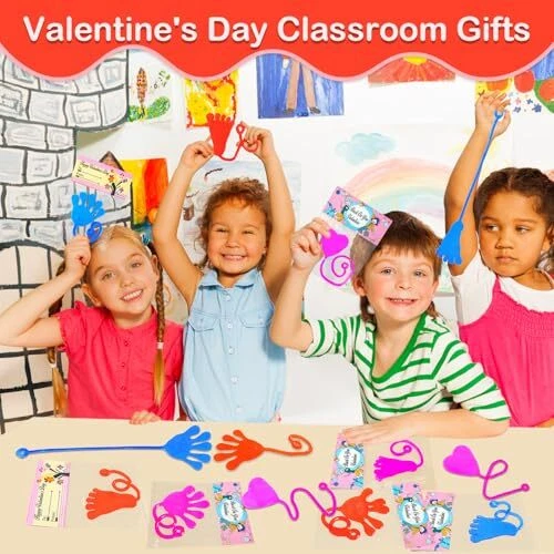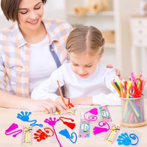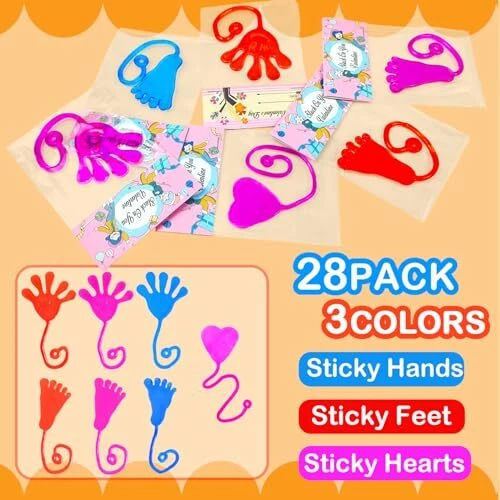 Return Policy Fast Delivery Trusted seller Valentines Day Gifts Cards for Kids Classroom, 28-Pack Sticky Hands Feet Hearts Toys with Class Exchange Cards, Valentines non candy Treats Goodies Prizes School Party Favors for Toddlers Boys Girls Product Description 28 Valentines Toys with Cards - This set includes sticky hands, sticky feet, sticky hearts with Valentines cards that allow your kids to write names on them. Valentines Gifts for Kids Classroom - Great Valentines school class gifts for your kids to give out to their classmate and friends on Valentine's Day. Valentines Party Favor Supplies - Excellent fun gifts goodie bag stuffer filler prizes non candy treats for kids party at school. Stretchy & Slimy Toys - These toys are made of vinyl, which is sticky, slimy, stretchy, and gooey. Kids' Favorite Stuff - Kids will love tossing and flinging them on the ceiling, walls, windows, and tables. It will keep them entertained for hours. Fun for All Ages - Perfect for preschool, kindergarten, daycare toddler boys girls and older kids who love playful fun. Shipping Returns Payment Shipping Shipping is FREE to all addresses other than APO/PO boxes in the lower 48 states. All our stock ships from US-based warehouses. Shipped via USPS or UPS (depending on location and package weight) Unless stated otherwise, all orders will ship within 24-72 hours of your payment being processed. Check our feedback to see the great reviews of FAST shipping we offer. Returns Seller does not accept returns Payment We currently accept payment via eBay managed payments only. Once payment is cleared, we will dispatch your shipment within 1-3 business days. Please refer to the "Shipping" tab for more information regarding shipping speed to your destination.