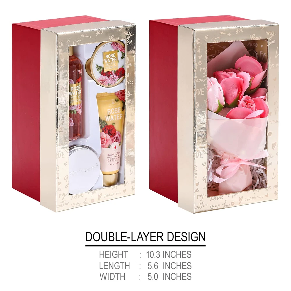 Store New Arrivals Add to Favorite View Feedback Contact Valentines Day Gifts Spa Set for Her - Spa Gift Baskets for Women, 5 Piece Mothers Day Gifts for Mom with Rose Scented Shower Gel, Body Scrub, Body Lotion, Hand Soap Description Color Pink Item Form Gel Product Dimensions 5.59 x 5 x 10.31 inches; 1.97 Pounds Country of Origin China Product Benefits Provides a luxurious spa experience and makes an ideal gift for various occasions. Skin Type Oily, Combination, Dry, Normal Scent Rose Luxurious Double-Layer Design Bath GiftSet: 2pc separate spa boxes are packaged together very beautifully and double surprise gift experience,this woman gift sets includes shower sel,body scrub,body lotion,hand soap Rose Gift Artificial Bouquet: No need to worry about the lifespan of this beautiful rose bouqet! Give her the gift of forever with this beautiful self-care gift set with this artificial rose bouquet she can display anywhere for a romantic touch Pure Rose Scent: Inspired by the love and romance of the rose, this Christmas bath gift set has a long-lasting floral fragrance that anybody would enjoy. Let our products create a beautiful, relaxing environment and soak in the rose water aromas Perfect Gift Set for Her: Look no further for the perfect bath gift that she will absolutely love! Whether it's for your mother, girlfriend, wife, love, sister or a friend Natural Ingredients: Our gift set product are made with high-quality, ingredients that will treat and moisturize skin, never irritate. Enjoy our bath body products on every skin type Product Description BATH SET INCLUDES: Shower Gel 6.8oz(200ml) Body Lotion 3.4oz(100ml) Hand Soap 3.4oz(100ml) Body Scrub 1.80z(50g) Artificial Rose Bouquet of flowers ABOUT US We offer the best prices around on high quality products. Our E-store includes media such as books, movies, music and games while offering electronics, toys, sporting apparel, clothing, tools, general home, garden items and more. SHIPPING We are always working hard to ensure your package arrives as soon as possible. Please understand that some factors like weather, high postal traffic, and the performance of shipping companies are outside of our control. We offer free shipping to the lower 48 states and ship within 2 business days of payment, usually sooner. We do not accept P.O. Boxes. Please provide a physical address. For shipping outside of the continental USA, we only use eBay's Global Shipping Program.The item is shipped to KY and then sent to the rest of the world. International customers are responsible for all duties and taxes. Continue to 'check out' to calculate costs for shipping the item to your country. Messages regarding eBay's Global Shipping Program MUST be directed at eBay EXCLUSIVELY. RETURNS We offer a 30-Day Return Policy on items in which you are not completely satisfied with. You have the option of a full-refund or an exchange of the item. No returns are available on items shipped outside of the USA. PAYMENT We accept PayPal. CONTACT US This page content is yet to come Please ad us to your favorite seller and visit again later Thank You CUSTOMER SATISFACTION We try our very best to make sure every customer is completely satisfied. If there's a problem, message us! We're happy to help. WE ACCEPT Copyright © 2021 AutoDS. | All Rights Reserved
