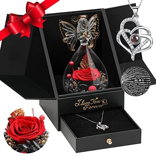 Batteries required: No gtin13: Does Not Apply Item Weight: 1.31 pounds Item Width: 4.7 EAN: Does Not Apply Type: Does Not Apply Manufacturer: Does Not Apply Item Length: 4.8 Brand: Does Not Apply Tick repellent material: Preserved Flowers, Glass Angel Figurines Product Dimensions: 4.8 x 4.7 x 6.9 inches Item Height: 6.9 Included Components: Glass Angel Figurine, Real Preserved Rose, I Love You Necklace in Specific instructions for use: Mothers Day Gifts for Mom from Daughter Son Husband, Romantic Gif Product: Does Not Apply Color: Red-love UPC: Does Not Apply Fabric Type: Glass Angel, Preserved Real Rose MPN: Does Not Apply