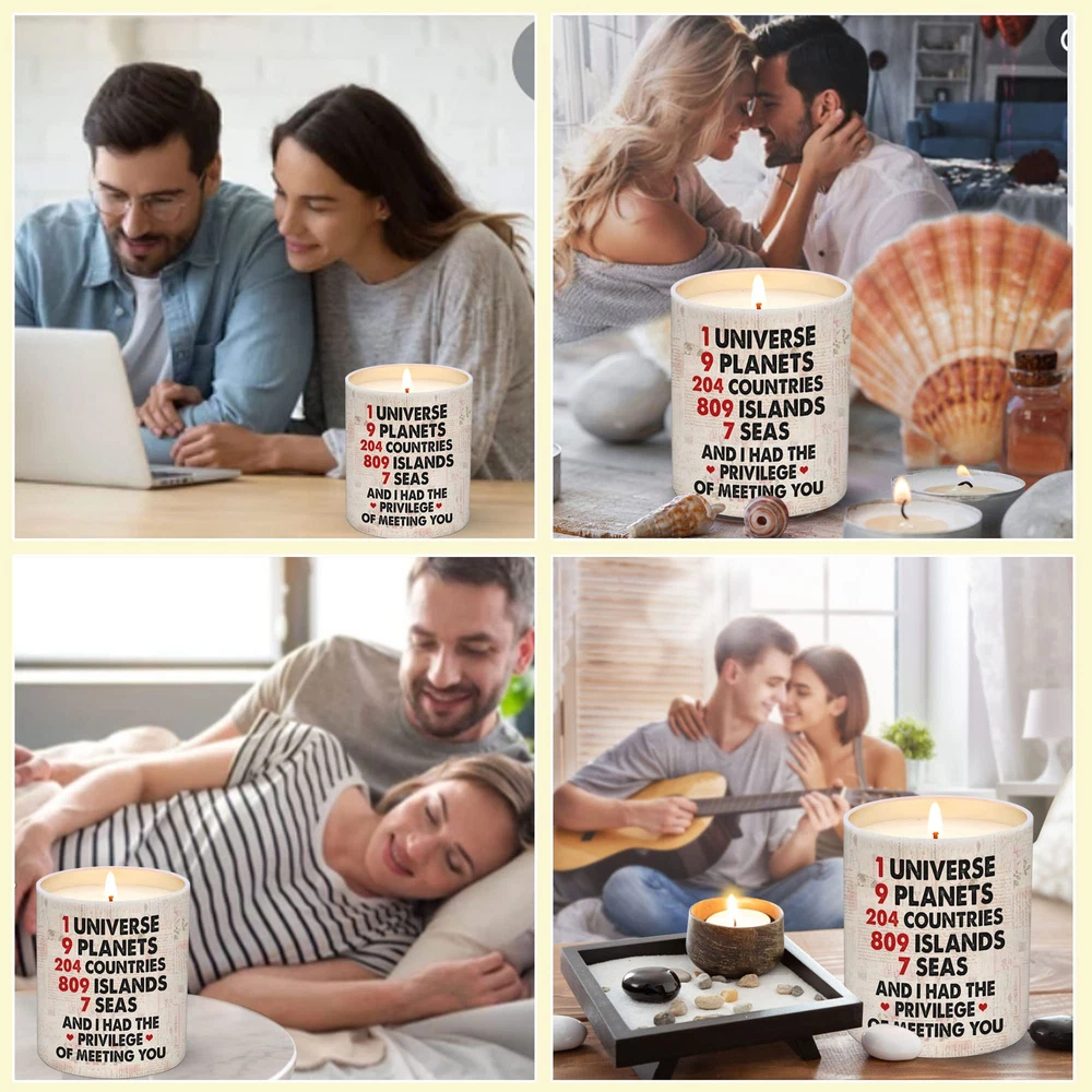 BEST ANNIVERSARY GIFT FOR HER, ANNIVERSARY GIFTS FOR HIM - This is a great meaningful gift ideas for a scented candle with a romantic quote, this candle is the best gift ideas for romantic gifts for her, romantic gifts for him, i love you gifts for her, him BIRTHDAY GIFTS FOR HER, HIM - Our strong scented, natural candles make for the perfect relaxing presents for your partner. Great gifts for your boyfriend, girlfriend, BFF, wife, husband, fiancé, fiancee, best friends, coworker, employee, boss, bro, buddy, boss, partner PERFECT GIFTS FOR ANY HOLIDAYS - Great gifts ideas for birthday, new job, housewarming, graduation, wedding, Valentine's Day, Mother's Day, Thanksgiving, Christmas, anniversary. Melting your partner's heart with the sweet message and aroma of this unique candle READY-TO-GIFT PACKAGING - Our Candle Boxes are beautifully designed with a elegant touch. Avoid the embarrassment of cheap looking gift boxes packed with tacky dollar store items ECO-FRIENDLY And REUSABLE - The candle is handmade with high quality natural soy wax and lemongrass fragrance oils. Our soy wax burns nice and clean and Eco-friendly that perfect for aromatherapy, meditation, yoga, etc. Wax can easily be cleaned out of the jar with hot soapy water and the jar can be reused or recycled