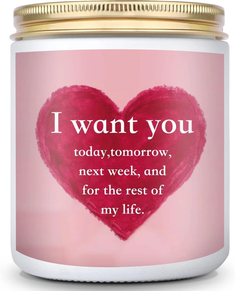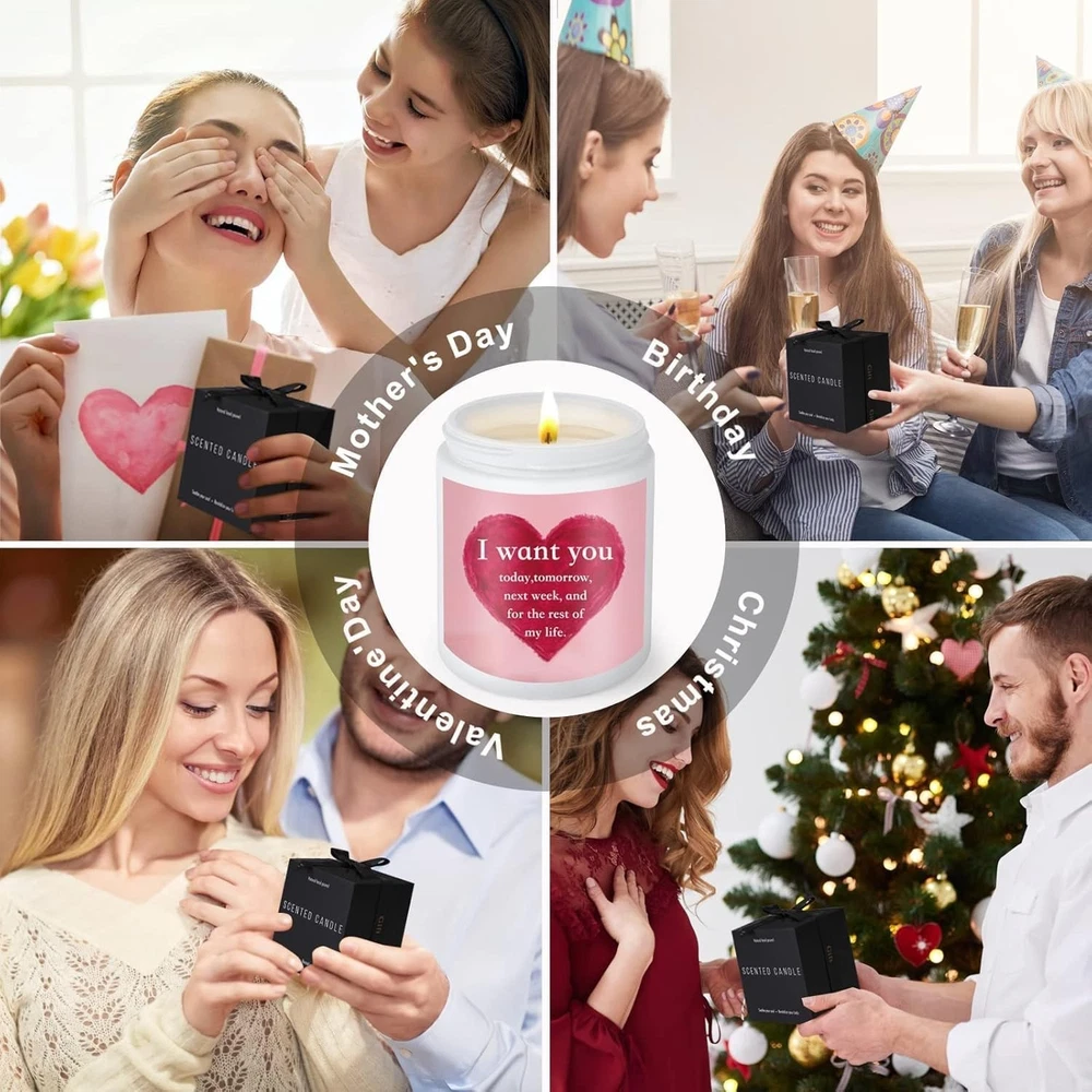 About this item: Color Brown.I Want you,Black. Mother Product Dimensions 3.45"W x 2.75"H Item Weight 75 Grams Number of Items 1 Scent Lavender Are Batteries Included No Indoor/Outdoor Usage Indoor Specific Uses For Product Scented,Wedding Shape Round đă Romantic Valentines Day Gifts for Her ă Great valentines day gifts for her, gifts for wife, girlfriend, gifts for her, girlfriend, Best friends, BFF, wife, fiance, fiancee, sister,couple gifts, dating, wedding gifts, thinking of you gifts, mum gifts,i love you gifts ,just because gifts? And anyone else to show them how much you care about them and how special and important they are to you! Hidden surprising message, delicate candles and beautiful boxes will make them giggle& shine! đ·ă Unique Birthday Gifts for Wife, Girlfriendă Its an amazing birthday gift for her and will make her looks more stunning than ever! Classic jar scented candles with touching saying make the candle be the best birthday gifts for women, best friend birthday gifts, Gifts for Mom from daughter,adorable birthday gifts for women, mum, her, girlfriend, wife, boyfriend, husband, lover, sister, daughter, aunt, fiance, niece, grandma, colleague, mother in law.If this isnât the BEST GIFT BOX sheâs ever received, itâs on us! đ ăBest Anniversay Gifts for Her, Couple ăThe funny love couple gifts with an humors and sentimental saying, make it be a really great and unique anniversary gifts for her, wife, girlfriend, fiancĂ©e fiance ,couple, great gifts for her, gifts for him, fun anniversary gifts, valentineâs day gifts for him, her, girlfriend, boyfriend, couple, long distance relationship gifts.You can bet anyone would be happy receiving this candle. đ ă Perfect Christmas Gifts for Womenă -Personalized romantic gifts are perfect for giving to women on various occasions - Perfect gifts for best friends birthday, anniversary gits for her, him, Valentines Day Gifts for her,gifts for girlfriend, gifts for mother's day, relaxing gifts for women, Christmas gifts, Thanksgiving Day gifts, Easter gifts, funny stocking stuffer, secret Santa gift, housewarming gifts, engagement gifts for couple,wedding gifts,date gifts. đ· ăVEGAN &EARTH FRIENDLY ă-The soy scented candle for its reduced soot while burning. The lavender scent is nice without being overpowering and the presentation gift box with a bow is a very nice additional touch that makes this a great gift. You can bet anyone would be happy receiving this candle.