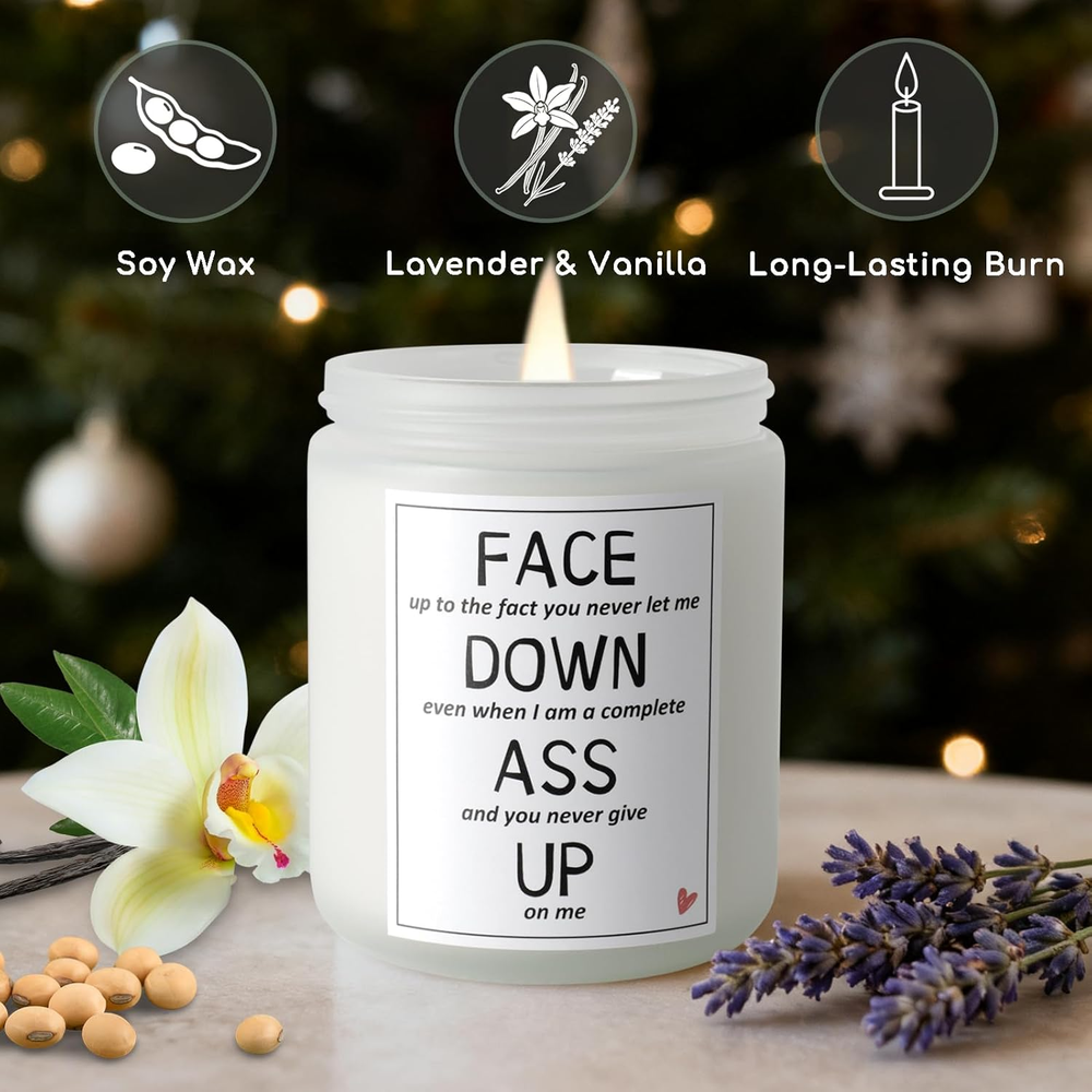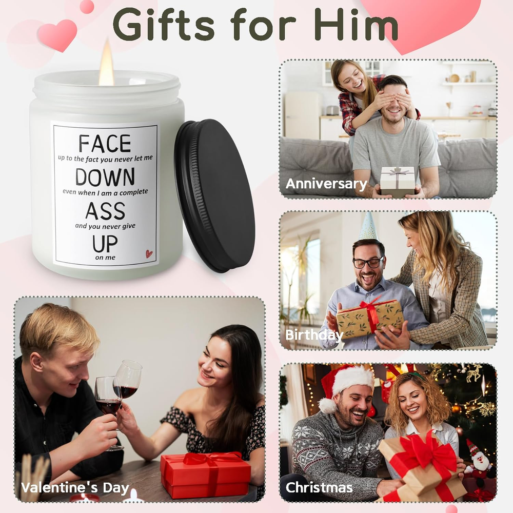 Funny Valentines Day Gifts for Men: Looking for unique valentines day gifts for him boyfriend that feel funny yet meaningful? This 9oz jar candle combines humor and appreciation in one memorable keepsake. With a playful yet sincere label, it works naturally as valentine gifts for men, valentines day gifts for husband, or funny valentines gifts for him, making it a thoughtful valentines day gift for him and a fun couple gift that shows love without being overly sentimental. Vanilla Lavender Scent Experience: Designed to help him relax after a long day, this vanilla candle is infused with vanilla and lavender fragrance for a soft, calming scent. It works well as valentines for him and a soothing valentines day gift. With a long burn time, gentle lavender notes create a peaceful atmosphere, making it a practical choice among mens valentines day gifts, men valentine's gifts, and best boyfriend valentine day gifts for him. Romantic & Versatile Valentine Gifts: Created as valentines day gifts for boyfriend, this candle fits romantic dinners, cozy evenings, or everyday moments at home. It works as valentine gifts for boyfriend, boyfriend valentines day gifts, and husband valentines day gifts, offering a balance of humor and usefulness. Its gentle flame creates a cozy, romantic atmosphere, making it a perfect valentines gift for him. Premium Soy Wax & Cozy Comfort: With a classic vanilla candle design, this candle works well as valentines gifts for men, valentines gifts for him, valentine's gifts for him, or valentines gift for husband. Made with non-toxic 100% premium soy wax and a cotton wick, it burns cleanly and evenly with minimal smoke while filling any space with a warm vanilla aroma. Perfect for bedrooms, studies, or bathrooms, it adds cozy style and makes a playful, memorable gift with a hint of fun. Anniversary & Birthday Gifts for Him: Beyond valentine's day, this candle works well as anniversary gifts for men, anniversary gift for him, or birthday gifts for husband. It is also suitable as a birthday gift for boyfriend or gifts for fiance, making it ideal for special milestones. A versatile option for valentine's day gifts for him, valentine gift, mens valentines gifts, valentine for men, anniversary gifts for husband, or wedding anniversary gifts for husband. Product description Warm & Romantic Atmosphere The romantic touch of lavender blends with the warm sweetness of vanilla, filling the space with a soft sense of intimacy — the perfect ambiance for couples to share a cozy, heartfelt evening together. This candle is perfect for lighting on Valentines day to celebrate with your loved one, creating a warm and romantic atmosphere together. It’s also ideal for adding a special touch to meaningful occasions such as Birthday and Anniversary, helping make every celebration feel more memorable. Clean, Long — Lasting & Comforting Scent Made with high-quality soy wax, this non-toxic candle burns cleanly and can burn for a long time. The soothing lavender and vanilla aroma fills your space with warmth and comfort. When finished, the durable jar can be reused or recycled. What does this candle smell like? It has a soft blend of vanilla and lavender, creating a warm, relaxing scent perfect for a cozy or romantic atmosphere. Will it feel special as a gift? Yes! Made with non-toxic soy wax and a cotton wick, it burns evenly and looks elegant, making it gift-ready and thoughtful. Is it suitable as a Valentine’s Day gift? Absolutely. It’s perfect for boyfriends or husbands, and also works well for anniversaries, birthdays, or other special occasions.