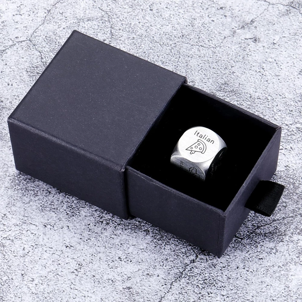 Free eBay listing template designed by dewiso.com Valentines Day Gifts for Him Her, Anniversary Steel Gifts Date Night Dice Gift for Boyfriend Girlfriend Wife Husband Couple Women Men Food Dice Decider Sweetest Day Birthday Wedding Christmas FREE AND FAST SHIPPING! Valentine's Day Gifts for Couples: Something special to do or eat and add some spice for husband or wife on your 10th wedding anniversary. gift for Birthday, Christmas, Anniversary Wedding Valentine's for friends. A cute date night decider, gift for man woman in Valentine's Day, anniversary gifts for couples.Unique love gifts, wedding gift for couple, engagement gift for bride and groom, great boyfriend Husband Christmas gifts, sweetest day gift for boyfriend girlfriend Interactive Couples Gift for Man Woman: Are you struggling with what to eat every day? This decision dice engraved with 6 cuisines: American, barbecue, Chinese, Mexican, Italian, seafood. You can spin the dice to decide what to eat. cute gift for man woman in Valentine's Day, anniversary gifts for couples, husband or wife, wedding gift for couple, engagement gift for bride and groom, stocking stuffer for men women, boyfriend Husband Christmas gifts, sweetest day gift for boyfriend girlfriend Birthday Anniversary Gifts for Him Her: Romantic gifts for girlfriend boyfriend wife Husband birthday gifts, birthday presents for my girlfriend, my man,future husband wife,husband wife to be, things to get your boyfriend for valentines day,sweet gift idea for fiancee,fiance,handsome,hubby,sweetheart,BF,GF,honey,spouse,Boo,bride. An anniversary traditional gift for celebrating the first year of marriage. bday,Christmas,Thanksgiving,National Boyfriend's Day, Spouse's Day Holiday Gift Idea for Friends: Funny gift for funny an women men, female male, her him; practical gift idea for friends, best friends,besties,BFF, close friend, classmates, roommates. Great work gifts for office work friends, work bestie, workmate, colleagues, employee, groups of coworkers, departing co-workers, retiring co-worker on Employee Appreciation Day, Boss Day, Admin Day, Labour Day, coworker gifts for office staff, Christmas gifts for coworkers women, staff appreciation gifts Material: The dice are made of premium stainless steel, not bend or break easily; eco-friendly material, no harm, nickel-free, and never cause any allergy. Engraved words are deep and easy to read. Comes with a gift box, convenient for you to mail or hand-deliver, while letting the recipient feel your sincerity! Product We offer a 30-Day Return Policy on items which you are not completely satisfied with. You have the option for a full-refund or an exchange of the item. No returns are available on items shipped outside of the US . Shipping We offer Free Shipping to the US and ship within 2 business days of payment, usually sooner. We use UPS express shipping. That's why your products are usually delivered within 3 days . Contact We try our very best to make sure every customer is completely satisfied. If there's a problem , message us! We're happy to help. 24/7 live chat available.