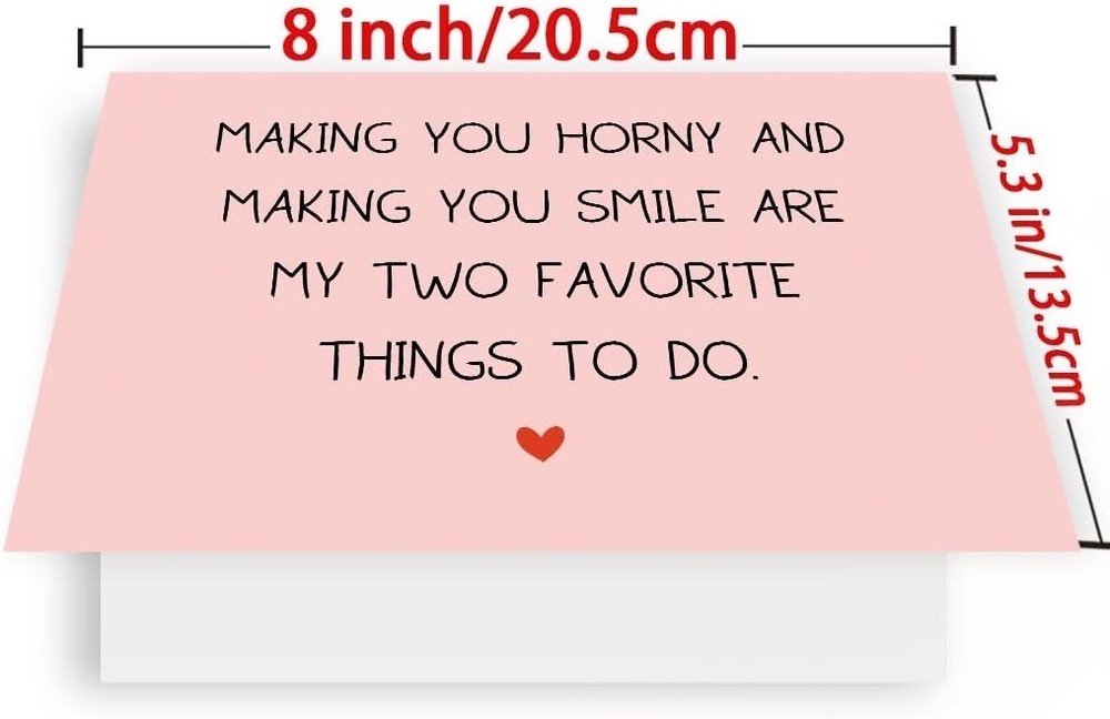 Unique Valentines & Anniversary Gifts: You can give this card as a gift to your husband or wife at special time and place. It's such a great gift to express love. Product Description: This holiday card has a fun feature, a cute image on the front, and a humorous text suitable for couples to give gifts. Inner blank: The inside of the greeting card is blank, and only the front is printed with a pattern. You can freely express your feelings and write them down. Product: Size: 5.3x 8/ 13.5 cm x 20.5 cm (folded). Printed on quality 300gsm linen cardstock recycled,With a matching red envelope. Technical Details Item Weight 1.23 ounces Product Dimensions 5.3 x 5.3 x 0.1 inches Number of Items 1 Size 5.3 x 8 inches (13.5 x 20.5 cm folded)