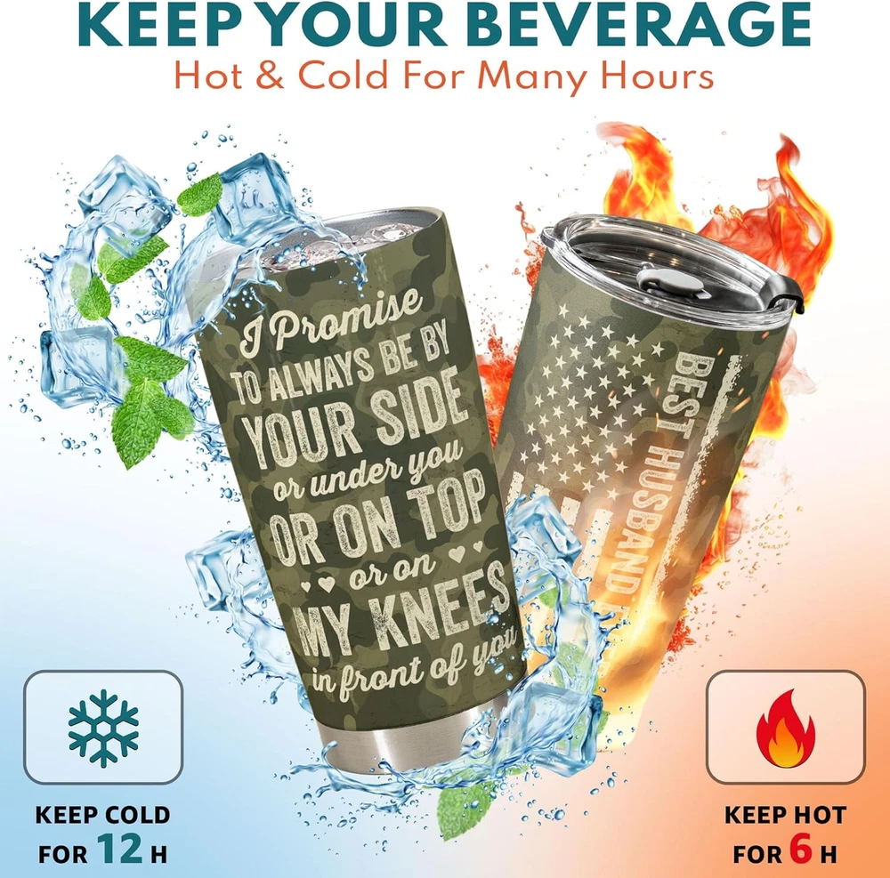π BEAUTIFUL TUMBLER π For a gift feels extra thoughtful and special because it can only come from you. π UNIQUE GIFT FOR THE LOVE OF YOUR LIFE π Our high-quality Tumbler with heart-touching design will certainly be the perfect gift to the man of your life, who loves you, cherishes and supports you in every situation. Presenting this gift to your husband as a sincere thanks for coming into your life and making your everyday worthwhile, every moment wonderful. In this way, you can express how you're grateful for the love and happiness he brings to your life. π TEMPERATURE RETENTION - Featuring a leakproof cap and made from food-grade stainless steel and BPA-free components, our vacuum insulated flask can keep your beverages hot or cold, at just the right temperature for up to 9 hours, depending on the outside temperature. π PREMIUM MATERIAL - The cup body is made from 18/8 stainless steel, so this tumbler is durable, unbreakable, rust-resistant, and doesn't transfer the flavor of your drinks. The BPA-free clear lid that seals the cup tightly keeps spills under control and allows you to see inside. π FITS IN MOST CUP HOLDERS - Lightweight, compact, fits most car cup holders. Toss your bottle in your bag without worrying about spills, drips, or condensation. Product Description PERFECT VALENTINES DAY GIFTS BEAUTIFUL GIFT PACKAGING VACUUMED INSULATED TUMBLER