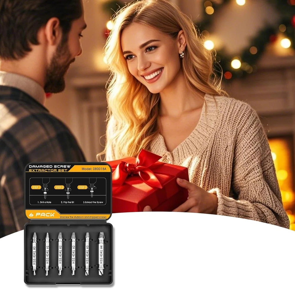 Valentines Day Gifts for Him,Damaged Screw Extractor Set Gift for Men,Stripped Screws Nuts & Bolts Drill Bit Tools for Broken or Stubborn Screws Removal,Stocking Stuffers for Him 🎁Unique Valentines Gifts for DIY Enthusiasts: Surprise your loved one with a practical yet thoughtful gift that supports their passion for fixing and creating. Comes in an elegant, compact case, making it a perfect Father's Day gift that combines practicality with aesthetic appeal. This universal tool screw extractor bit is also an excellent gift for any man or women for every occasion: Christmas, Thanksgiving Day, Father's Day, Mother's Day, Valentine's Day, Teachers' Day, New , Birthday, Anniversary,Retirement,etc. 🎁Durable High-Speed Steel Material: Made from HSS 4341 material with 62-63 HRC hardness, ensuring long-lasting performance and reliable screw extraction in tough conditions. 🎁Easy Removal of Damaged Screws: The screw remover and extractor kit is designed to efficiently remove stripped, broken, or rusted screws, saving time and effort during repair projects. Simple 3-Step operation: Drill a hole, flip the bit, and going up one size on the extraction drill bit, you'll see they grip the screw and pulled it straight out — no extra tools required! 🎁Universal Compatibility: Includes six different-sized extractors to handle various screw sizes, making it a must-have tool for any toolbox. Comes in a convenient storage case for easy organization and portability, ensuring you have the right tool wherever you go. 🎁Perfect Gift for Handy Individuals: An essential toolset for anyone who enjoys DIY projects, home improvement, or professional repair work.Perfect for home repairs, woodworking, and mechanical tasks, catering to DIY enthusiasts, homeowners, and professional contractors alike.