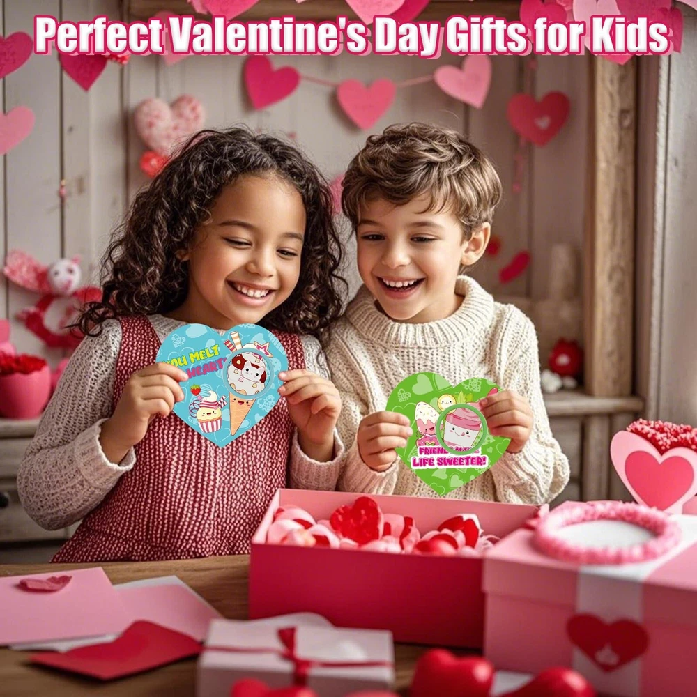 Valentines Day Gifts for Kids, 24 Valentines Ice Cream Butter Slime Card Bulk, Valentine Exchange Cards for Girls Boys School Class Classroom Party Favors Age 3 Year and Up Product Details Color: Red, Pink, White Material: Polyvinyl Alcohol (PVA) Brand: Funewest Theme: Love Item dimensions L x W x H: 11 x 6.1 x 2 inches Occasion: Valentine's Day Manufacturer: Funewest UPC: 708436958147 Age Range (Description): Kid Product Dimensions: 11 x 6.1 x 2 inches Item Weight: 1.32 pounds Country of Origin: China Manufacturer recommended age: 3 years and up Super Value Pack- 24 adorable dessert-themed slime jars paired with 24 heart-shaped cards, and DIY tools (bags and adhesive dots). A one-stop solution for kids' Valentines Day gift exchange needs. 6 Adorable Design- Each slime jar and card features dessert illustrations and playful text (e.g., Donut Forget, Youre Awesome!), adding fun and warmth to Valentines Day. DIY Fun for Kids- The soft, stretchy, squeezable, swirly, and poppable slime can be paired with heart-shaped cards to create unique sweet gifts, sparking kids creativity. Valentine's Day Gifts for Kids- Perfect for classroom exchanges, preschool or elementary school parties, or any Valentines event! Safe and Certified- Non-toxic materials, meeting multiple international safety standards for parents peace of mind. If (valentines day cards for kids school) don't meet your expectations, let us know