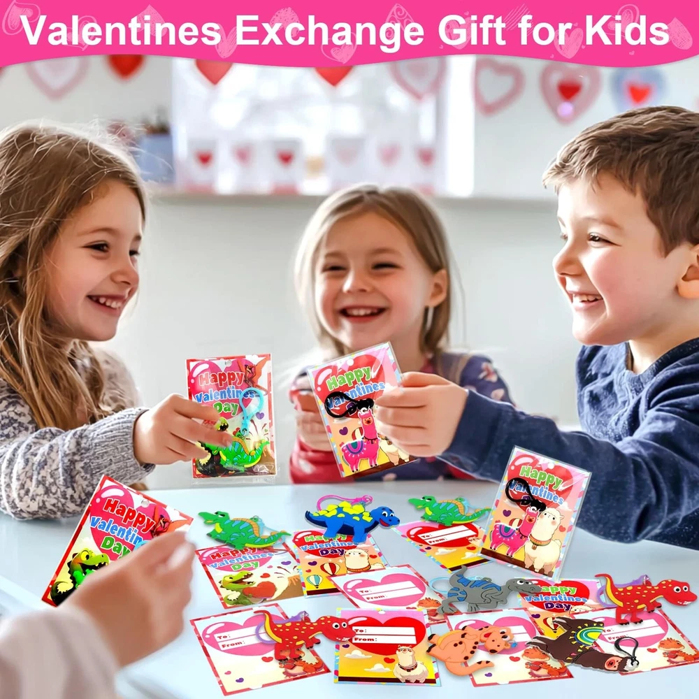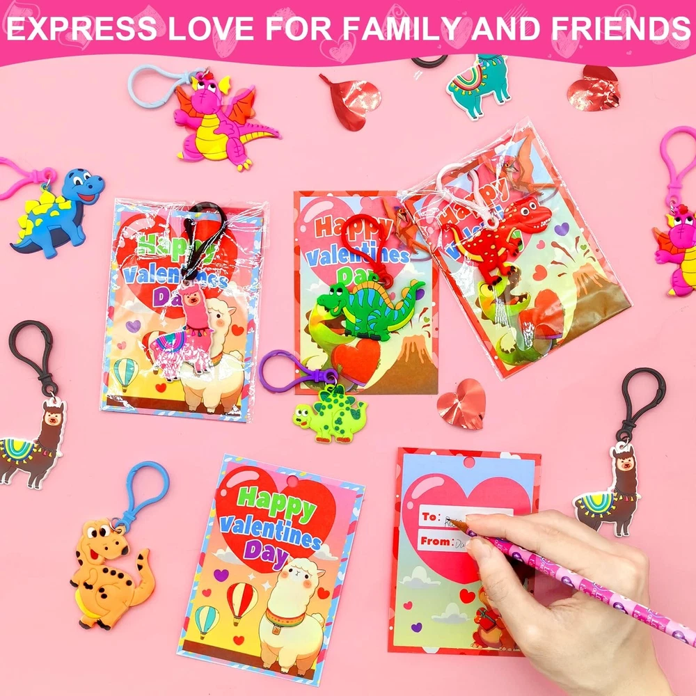 Valentine's Day Gifts for Kids - 28 Pack Alpaca & Dinosaur Keychains Set with Heart Theme Kids Valentines Cards School Exchange, Classroom Prizes, Valentines Party Favors Product Details Color: Colorful Material: Polyvinyl Chloride (PVC) Brand: Dealot Theme: Valentine's Day Decorations Item dimensions L x W x H: 1 x 1 x 1 inches Occasion: Classroom Prizes, Party Goodie Bag Fillers, Valentine's Day Decorations Manufacturer: EZY-TJ-VG25YK28-1 Age Range (Description): Kid Product Dimensions: 1 x 1 x 1 inches Item Weight: 9.9 ounces Country of Origin: China Manufacturer recommended age: 12 years and up Department: mens Animal Keychain Valentines for Kids Class: You will receive 28 animals,which is 14 of dinosaur and alpaca ,28 animals theme cards. It's bright colors,novel and exquisite pendant charms are suitable for your different decoration use.Perfect Valentines Day gifts for kids Unique Design: Our animals keychain pendant are very realistic and cute, it contains dinosaur and alpaca design! You can use them to decorate your kids' birthday parties, creating a cute environment and joyful atmosphere, bringing more happiness to them. Very mini, easy to put in a candy bag. Funny animals keychain Valentines for kids High-quality Materials: These backpack animals squishy keychains are made of premium rubber, highly flexible, preventing easy breakage for safe carrying. It can be easily hung on the key as a keychain, also can be hung on your backpack as an adorable decoration Widely Use: These animals keychains make excellent decorative accessories for backpacks, wallets, cell phone straps, and other personal items, allowing you to add a touch of personality and style. Can be used as party favors or event favors,Valentines Day gifts decorations Surprise Fun Valentine's Day Gifts: With these animal keychains, your kids can dress up themselves or decorate jungle animal party for more joy; These animal keychains can also be applies as gifts for your kids' friends or guests children, even as classroom rewards for students Feature: -These animal birthday party favors keychains are suitable for birthday party, game theme party and other related parties, this varied party favors supplies can meet your various occasion needs and bring joy for your carefully prepared party -These farm animal shaped keychains are favored for boys or girls, and you can decorate your schoolbags, backpacks, wallet and so on. And they are good favors for parties, classmates gatherings, daily life, going out for dating, etc Package includes: 14 x dinosaur keychains 14 x alpaca keychains 28 x animals theme cards 28 x transparent bags Size: card 3.44.8 inch Keychain: Alpaca: 1.624.31 inch Rose + yellow dinosaur: 2.564.37 inch Orange dinosaur: 24.45 inch Red dinosaur: 2.63.43 inch Dark green dinosaur: 2.563.43 inch Gray dinosaur: 2.53.66 inch Blue dinosaur: 2.683.58 inch Light green dinosaur: 1.753.35 inch Material: PVC Color: colorful NOTE There might be a little color difference due to the monitor, camera or other factors. Please understand. Manual measurement, please allow 0.3inch error.