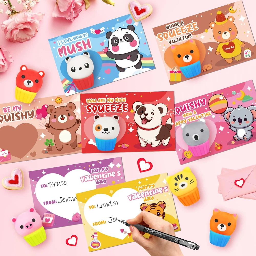 Valentines Day Gifts for Kids, 28 Pack Valentines Cards for Kids Classroom School with Kawaii Animals Squeeze Toys, Stretchy Balls for Classroom Gifts Exchange, Valentines for Kids Party Favors Value Gift Set for Kids - Our Valentine’s Day cards with animal squeeze toys for kids are the perfect Valentine’s gift! This exceptional valentines day gifts for kids includes 28 beautifully designed Valentine’s Day cards and 28 squeeze animal toys. The quantity is enough for the teacher to prepare a Valentine's party for the whole class. These cards are designed for kids, making them ideal for Valentine’s Day in the classroom or school. Well-Design Valentine's Cards - There are 7 kinds of animal squeeze toys with 7 card designs. Each with attractive decorations, and a special punchline matching a Toys’ theme. Boys and girls could write down their best wishes on the valentines cards to express love & gratitude for family and friends. It's a fantastic present option for kids, friends, classmates, and students in school classroom. They are sure to be a hit among kids during Valentine’s Day exchanges at school. "Kids Valentines Day Gift- Kids can bend, and stretch these relief fidget balls. It can help toddlers and kids learn colors and shapes, develop their brains, and improve their imagination, creativity, and hands-on ability. These balls have good flexibility, are flexible and comfortable, are easy to hold in your hand, help to relieve the fidget and tension in your daily life, and you can have fun with your friend, also share them with your friends or colleagues as a special valentines day gifts." Safe & Durable - Our squeeze animal toys are composed of soft rubber (TPR) material outer layer, not easy to break, deform, or fade, and can retain their vivid colors after a long time of use. It is non-toxic and free of BPA. It's safe for kids. These stretchy animal toys all come with 7 different animals, which makes them cute and attractive. The squeeze animal toys are about 1.57", perfect for kids to catch, and can be placed in a bag and carried anywhere. Kids will love this Valentine's stretchy gift for classroom. Ideal Gift for Valentine's Day - Kids can write best wishes on the Valentine's greeting card, and give them to their friends on Valentine's Day. Children could exchange gifts and share their love with their family, friends, and classmates. Our Valentine's greeting cards set with animal squeeze toys is perfect for Kid's Valentine's Day. It's a great gift option for kids' school classroom prizes, Valentine's Day gifts for kids school, class events, party favor supplies, or any Valentine's occasions.