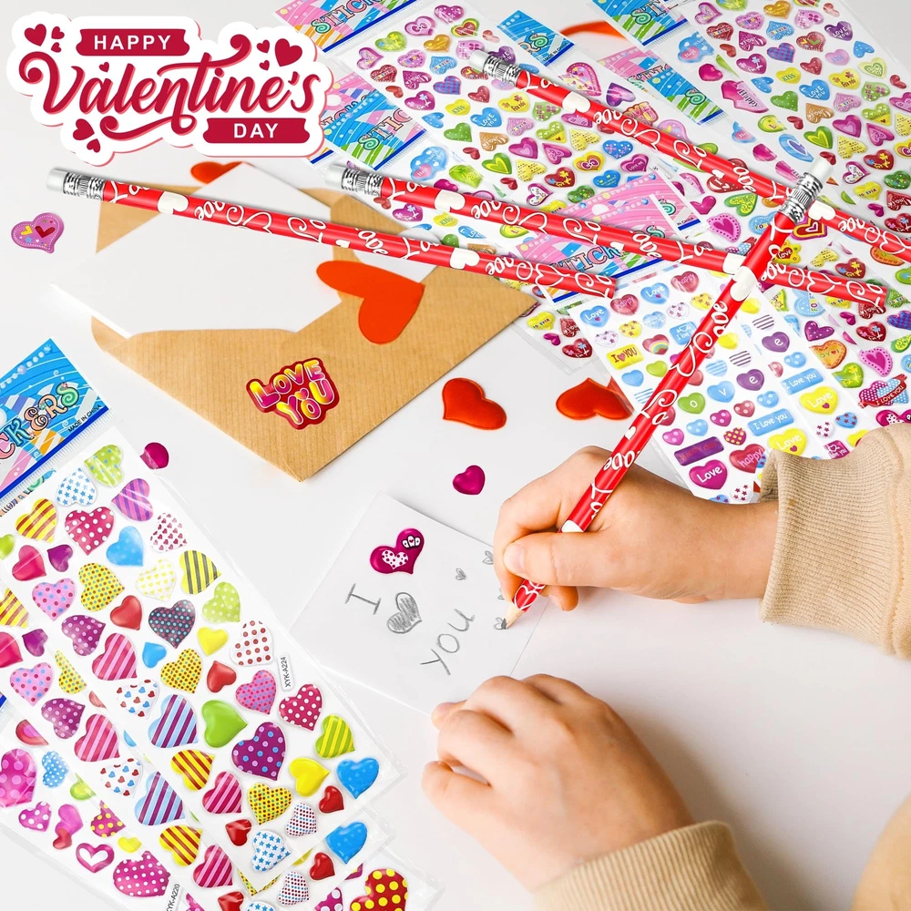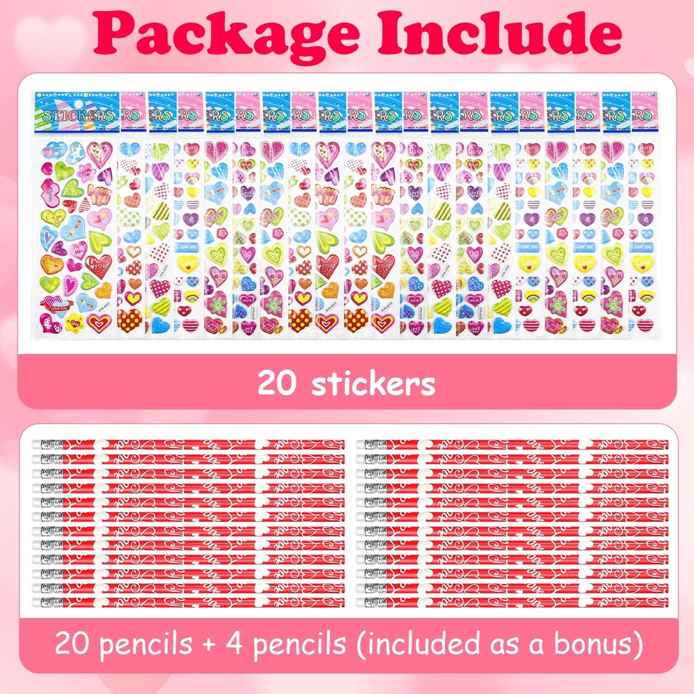 Valentines Day Gifts for Kids SUPER VALUE: Delight your kids with a 20-pack Valentine’s Stationary Gift Set! Each set includes a pencil and a sheet of fun valentines stickers. Plus, enjoy 4 extra pencils, making it perfect for class valentines day gifts for kids. PREMIUM QUALITY & SAFETY: Our stationary sets are crafted from high-quality, non-toxic, and BPA-free materials, ensuring they are safe for children. All items meet US toy safety standards, letting you gift with confidence. IDEAL FOR CLASSROOMS: These gift sets are perfect for kids valentines day gifts for school and classroom exchanges. Teachers can use them as classroom prizes or party favors, making them versatile for various events. PERFECT FOR TODDLERS: Designed with toddlers in mind, these sets are great toddler valentines day gifts. The vibrant stickers and pencils encourage creativity and fun, making them a hit among younger children. ENDLESS OCCASIONS: Whether it's for Valentine’s Day, a birthday party, or a home school reward, these valentines gifts for kids are suitable for numerous occasions. They are a thoughtful and practical addition to any celebration.