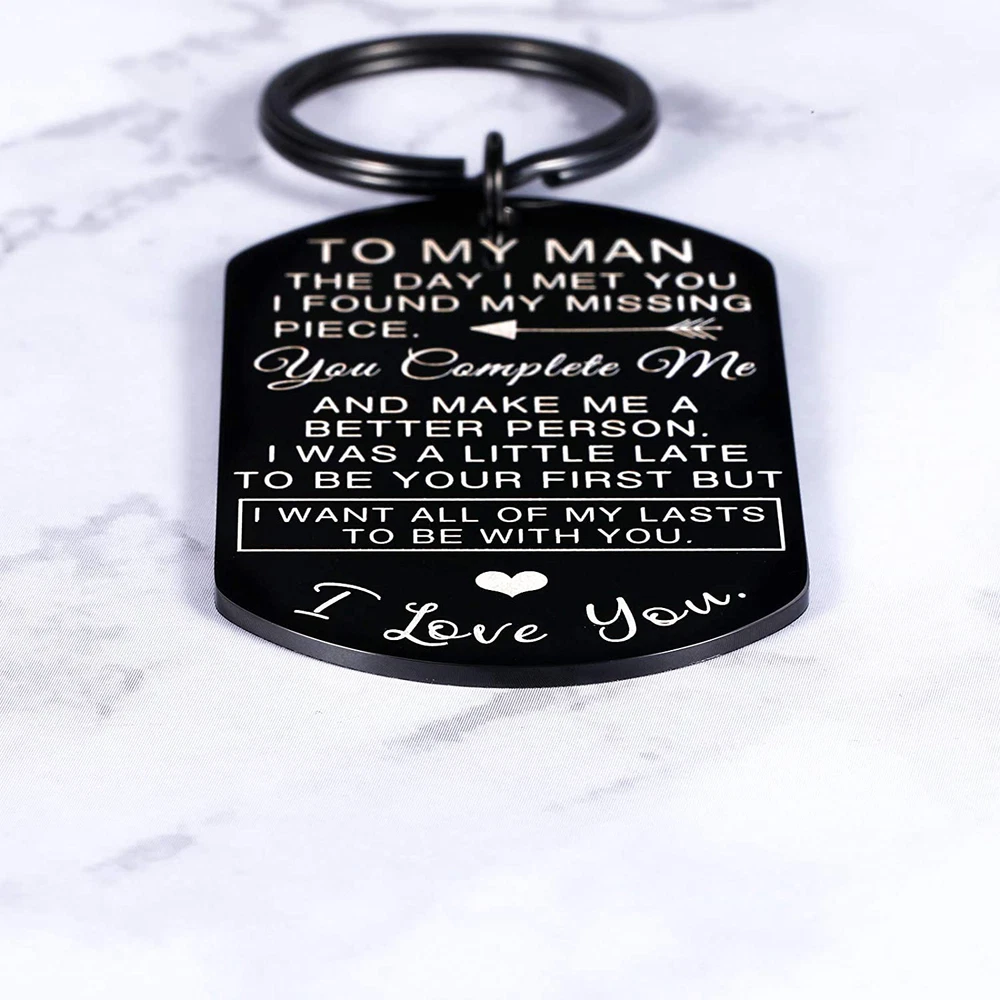 ❥Gifts for husband from wife:❥To my man the day I meet you I found my missing piece. You complete me and make me a better person. I was a little late to be your first but I want all of my lasts to be with you. I Love You. ❥I love you gifts for him:❥Husband gifts from wife, boyfriend valentines day gifts, gifts for fiance men. Anniversary gifts for him, birthday gifts for men, special gifts for him, wedding anniversary gifts for your man. ❥Couple gifts for boyfriend:❥Perfect for deployment, military, bday, engagement, wedding, graduation, Easter, Thanksgiving, Christmas, religious events, National Boyfriend's Day, Spouse's Day. Or just because, a little keepsake. ❥Romantic gifts for him:❥This emotional love quote is very much easy way to express your feelings to your boyfriend. It is most probably the best way to tell your boyfriend that how much you love him. Let him know that how much you love him. ❥Top fineness of the stainless steel❥: hypo-allergenic, resistant to atmospheric, steam and water corrosion, no stain, no rust. Made by premium process, no distortion, no deformation.
