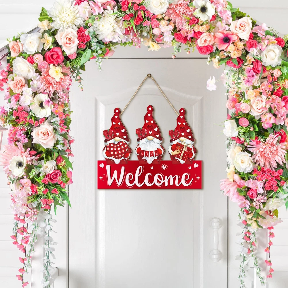 Features: Space saving and practical: Despite its intricate design, the Valentine's Day front door decor is compact. The appropriate size does not consume too much space whether you choose to hang it on your door or window, it optimizes your space efficiently while making a significant impact. Creating a festive atmosphere: This Valentine wall decoration is not just a decorative piece but a nice tool to establish a warm and joyful Valentine's atmosphere. It's the little details that can make your home look nice, and this gnome shaped hanging sign with roses is just the thing to add that touch of love. Specifications: Material: wood Color: as shown in the figure Size: about 13.2 x 10.6 x 0.2 inches/ 33.5 x 27 x 0.5 cm Package includes: 1 x Valentine's Day hanging sign Notes: Manual measurement, please allow slight errors on size. The color may exist a slight difference due to different screen displays. Ideal Size: with an approximate size of 13.2 x 10.6 x 0.2 inches/ 33.5 x 27 x 0.5 cm, Valentine's Day gnome decor offers an ideal footprint that allows effortless decoration without taking much space Stylish and Functional Design: the door hanging sign boasts a sweet gnome design adorned with romantic roses, and the warm welcoming word 'Welcome' printed on it; This exquisite look creates a sweet holiday atmosphere, making your home feel more inviting during Valentine's Day Quality Material: this Valentine's Day gnome door hanger is crafted with quality wood that are not easy to break, deform or fade, smooth surface, reliable and sturdy, ensuring its longevity and sturdiness Convenient Hanging Mechanism: equipped with a string, this adorable Valentines' door sign can be quickly and easily hung on different places, bringing festive cheer; Its design blend seamlessly with most home decoration styles, making it a versatile choice Multipurpose Home Decoration: this Valentines hanging sign goes well beyond decorating your front door; You can also embellish your porch, wall, window, table, fireplace mantel, bedroom, kitchen, living room, farmhouse, bathroom, coffee shop, or even a bakery to spread the Valentine's Day spirit