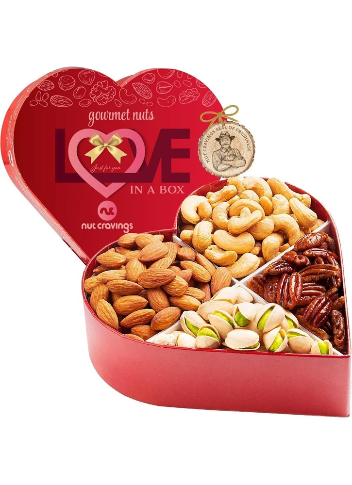 NUT CRAVINGS Gourmet Collection - Diwali & Halloween Treats Mixed Nuts Heart Shaped Gift Basket, Love in A Box (4 Assortments) Romantic Arrangement Platter, Healthy Kosher USA Made Exp 08/15/25
