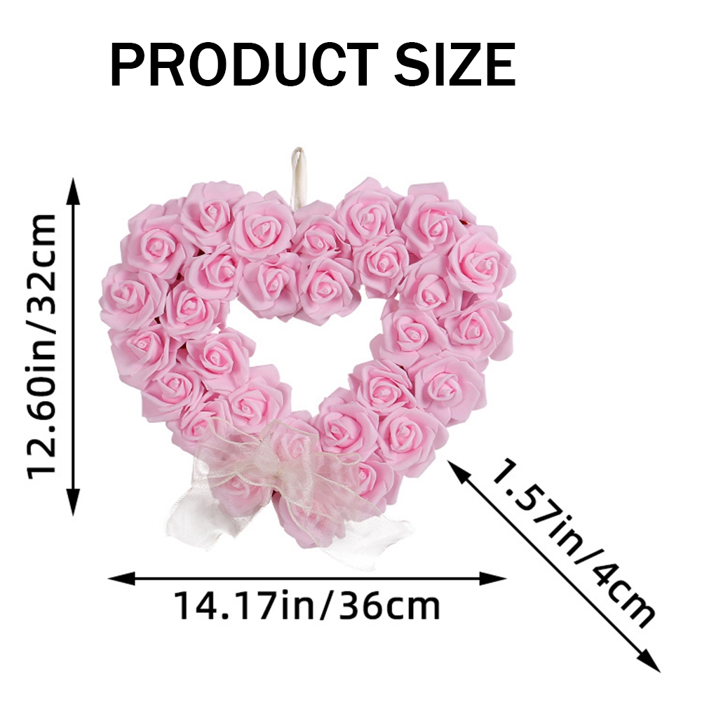 Valentine's Day Heart Shaped Wreath Floral Rose Garland Door Wreath for9692 [Composition]: This romantic heart shaped wreath is made of numerous real touch rose flowers and some small pearl, hand-tied in a perfect heart shape and best suit for your wedding or Valentine's Day, chic & romance. Choice for your wedding [Materials]: Our products use plastic and polyester fiber materials. This ensures that the product is both aesthetically sturdy and safe. You can place it wherever you want [Scope]: The heart shaped wreath is perfect for putting on a table for decorating. It makes a great accessory. [Maintenance]: The rose wreath can be used indoors and outdoors. If you need to use it outdoors, please note that rain and strong sunlight shorten the life of this product note: There may be some differences in different batches, it does not affect size: about 35 x 32 x 4cm Material: Polyester + plastic colour: White / Pink / Red Package Contents: 1 x Valentine's Day Wreath Only the above package content, other products are not included. Note: Light reflection and different displays may cause the color of the item in the picture a little different from the real thing. The measurement allowed error is +/- 1-3cm.
