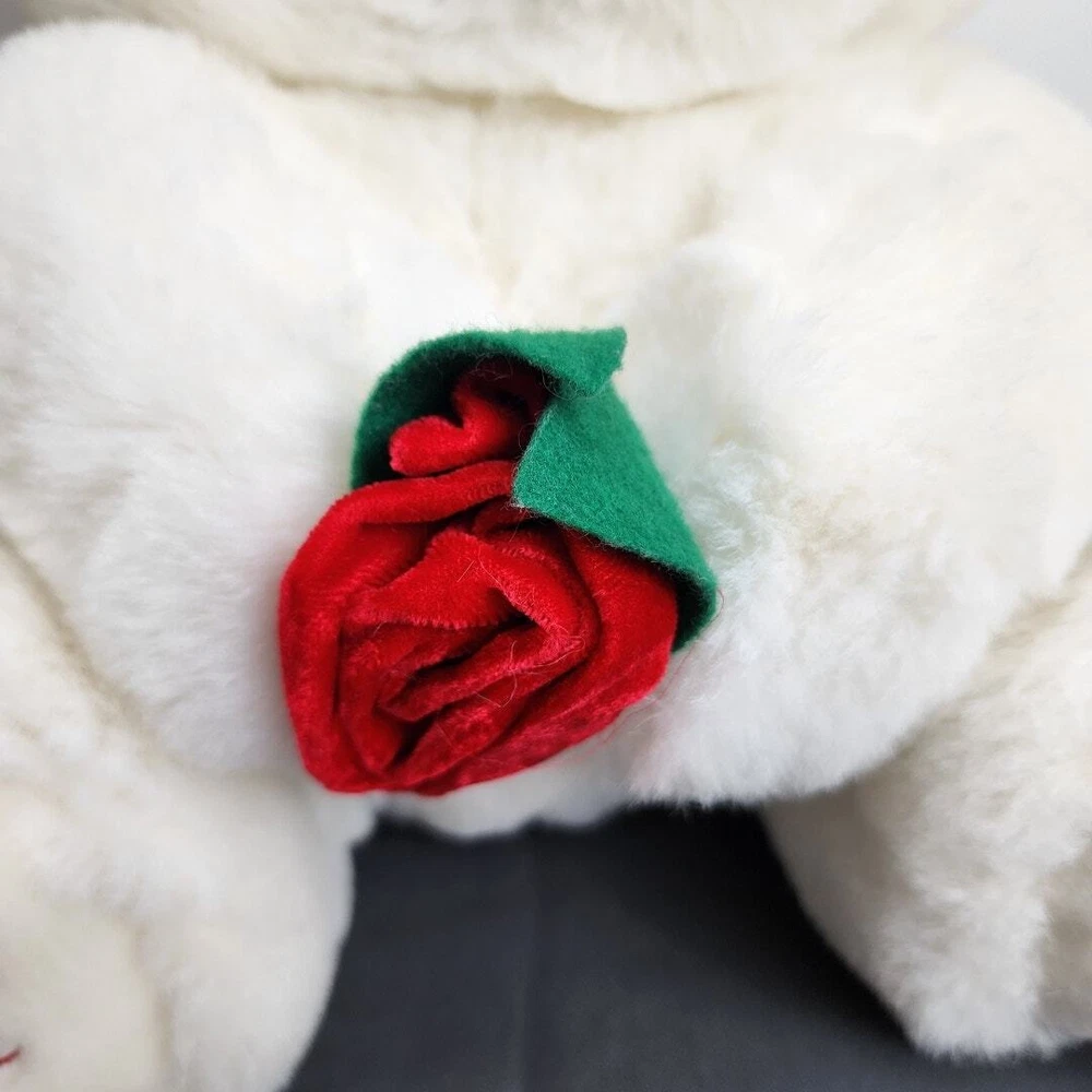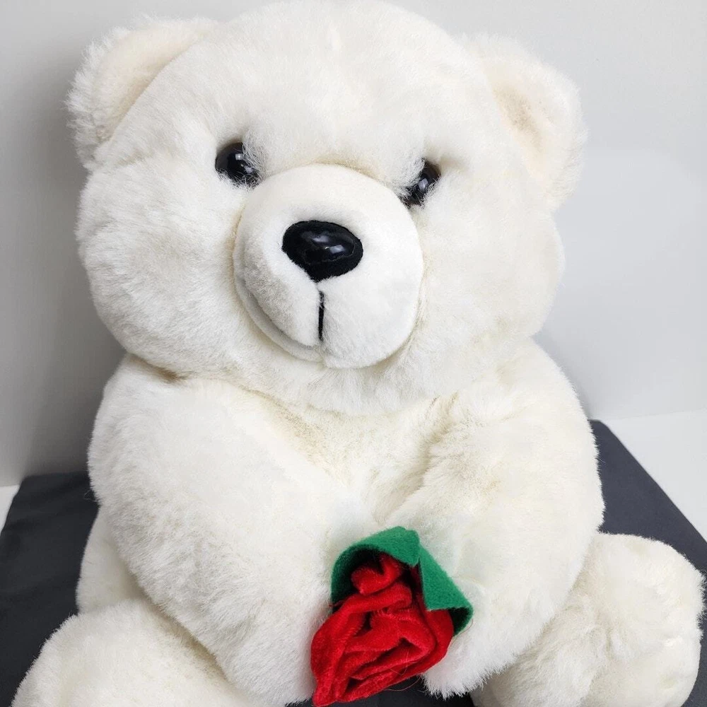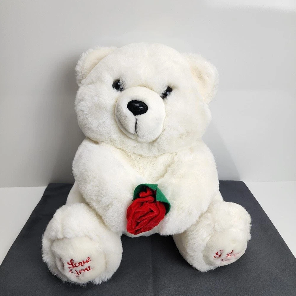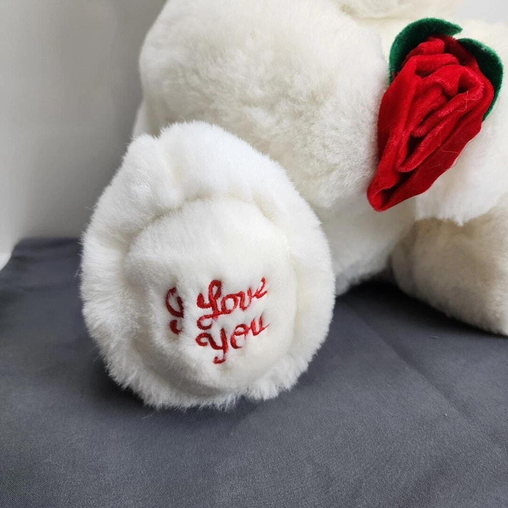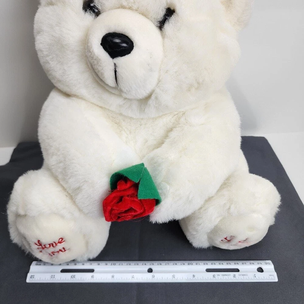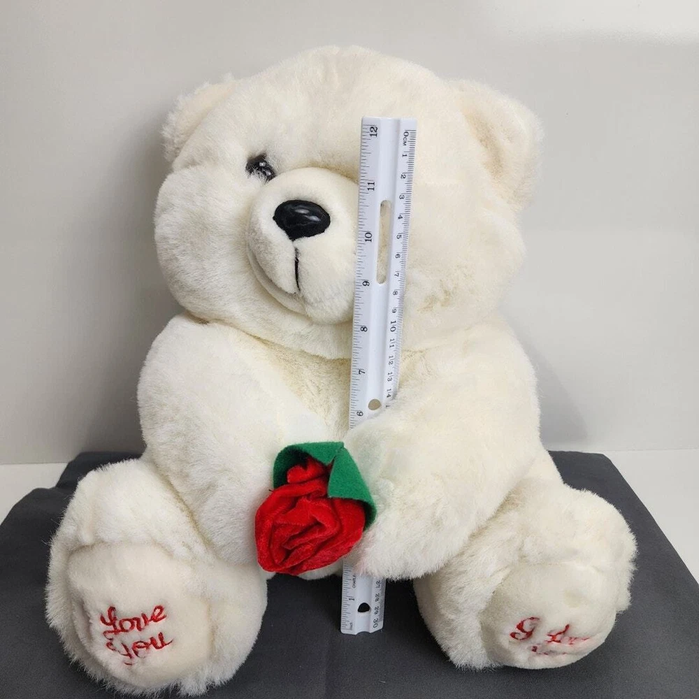 Valentines Day "I Love You" White Teddy Bear Holding Rose Stuffed 15" Tall Plush * MATERIAL: Polyester Fibers / Plastic / Felt * SIZE: 15" x 13" * AGE LEVEL: 5 and Up * FEATURES: "I Love You" Embroidered on both feet holding single rose * CONDITION: Very Soft & Cuddly (See Images for Specifics) Pre-Owned / Used: A product that has been used previously. View our listing for full details in our description and check out our photos provided. If there are any imperfections, it will be noted in the description and/or within the provided photos. We appreciate you looking at our listing. Before placing an order, feel free to ask any questions you may have about this item. Upon receiving your order, if you are not satisfied with your order, please contact us and we will address any issue.