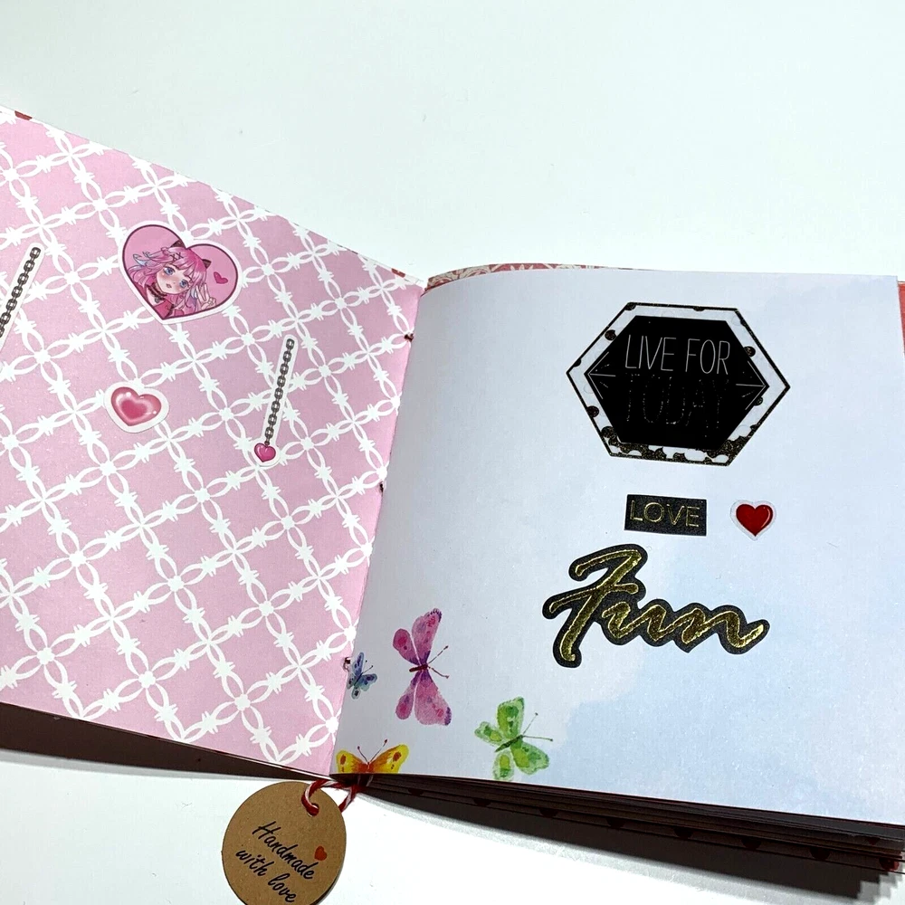 Handmade Junk Journal Pages were made to journal on or within a tag or paper within a pocket/envelope One of a kind Handmade by my 78 year old mother Design: Anime / Manga Ideas for using a Junk Journal: An Everyday Planner Book Writing your dreams and goals Gratitude Journal Bible Study Daily Diary Creative Ideas Journal Poetry Art Journal Recipes Family Memories and Photos Preserve Journal Homemaking Journal Health and Fitness Journaling Travel Journal Party Planning Journal (including the holidays like Christmas) Self Improvement Journal - ideas to better your life
