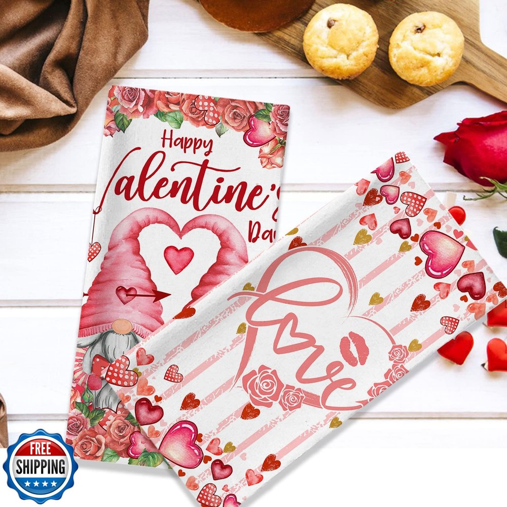 Valentines Day Kitchen Towels, Valentine Towels Set of 2, Gnomes Love Hearts Roses Happy Valentine's Day Hand Dish Tea Towels for Bathroom Housewarming Gifts Decorations for Home (18x28 Inches) Features 【Size】 The valentines day kitchen towels are 18"x28" (45 x 71 cm), set of 2. 【Material】 The valentine towels for kitchen are made of microfiber, absorbent, quick drying and high-quality. 【Easy to Clean】 Machine wash in cold water and tumble dry on low heat, not bleachable, fade resistant and shrink resistant; 【Purpose】 The valentine's day hand towels for bathroom can be used for drying dishes, wiping hands, and absorbing water stains or liquids; Wiping the surfaces that need to be cleaned, such as tabletops, countertops or windows. In addition, you can also decorate the cabinet. You can fold it on the cabinet or hang it on the handle of the oven to make the kitchen look more Valentines like. 【Gifts】 Perfect for valentines gifts for your mom, family and girlfriend. Also can be used as a housewarming, party themed gift for home kitchen, bathroom, diving room, etc. Shipping Free & Fast Shipping: We offer free shipping to most of the USA with a normal delivery time of 3-7 days. However, due to the current situation, additional delivery time (up to 3 weeks) may be required for some items. Alternative Carriers: We may use alternative carriers (e.g., USPS, FedEx, UPS) to ensure your package arrives safely and on time. Due to the use of multiple carriers, we are unable to provide a tracking number automatically. Handling Time: Orders are processed and shipped within 1-2 business days of receiving cleared payment. Shipping Restrictions: Shipping to Alaska, Hawaii, Puerto Rico, Guam, and other US territories may incur shipping charges or delivery restrictions. Please contact us before ordering, or your order can be refunded/cancelled. State Restrictions: Certain items may not be shipped to California due to state regulations. Contact for Tracking Updates: If you require tracking updates or have any concerns about the delivery of your order, please feel free to contact us, and we will be happy to assist you. Return Policy 30-Day Hassle-Free Returns: If you are not completely satisfied with your purchase, you can return the item for free within 30 days of receiving it for a full refund or exchange. Easy Return Process: Contact us, and we will provide you with a prepaid return shipping label and detailed instructions. No Restocking Fee: There are no restocking fees for returns. However, the buyer is responsible for return shipping costs if the return is not due to a seller"s error. Refund Processing: Refunds will be processed within 1 business day of receiving the returned item in its original condition. Feedback Your feedback is extremely important to us. We strive to provide the best products and customer service possible. If you are satisfied with your purchase, please take a moment to leave us a positive review. If you have any concerns or issues with your order, please contact us before leaving negative feedback. We are committed to resolving any problems and ensuring your satisfaction. Contact Us If you have any questions or concerns, please feel free to reach out to our customer support team. You can contact us through the eBay messaging system. We are available Monday to Friday, 9:00 am to 5:00 pm EST, and we will do our best to respond to your inquiry within 24 hours. Thank you for supporting our small family business!