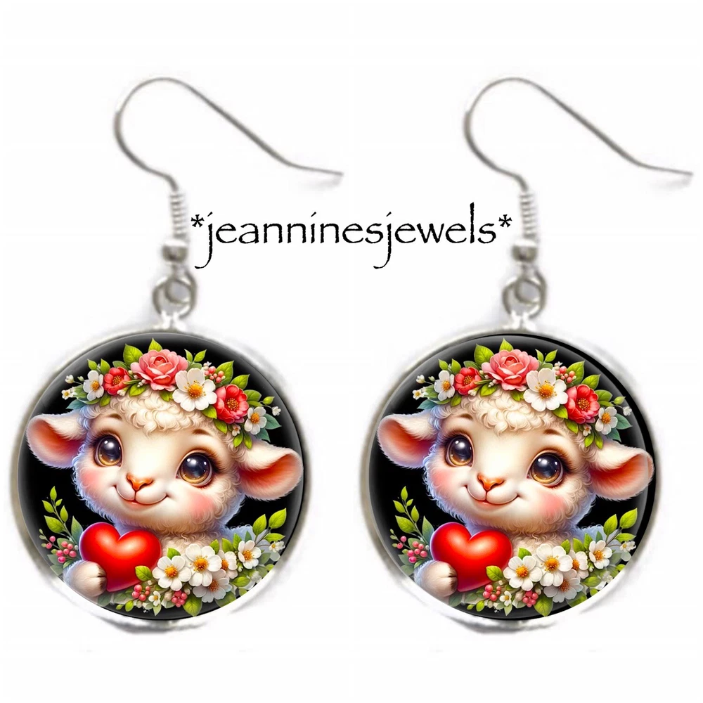 Valentines Day LAMB Earrings Silver Charm Dangle Cute Sheep Valentines Day Gift
