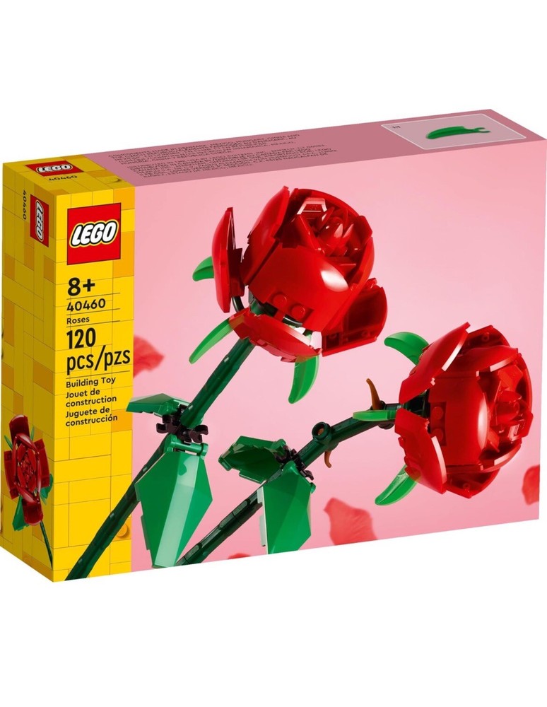 Mark a special occasion with these LEGO Roses (40460). They’re the perfect gift for Valentine’s Day, Mother’s Day, Woman's Day or just to let someone know how much they’re cherished. This set is sure to bring a beautiful burst of color when displayed in a vase. This easy-to-assemble set comes with 2 red blooms, green leaves and length-adjustable stems. Combine with LEGO Tulips (40461) to add extra color to this brick-built bouquet. The set is also compatible with the LEGO Flower Bouquet (10280). Contains 120 pieces.