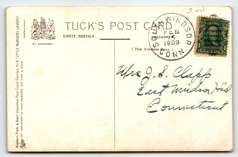 Posted with 1909 cancel. Antique original vintage embossed post card. Has corner dings, and age wear. Stock #val14. Additional postcards are in our store. All post cards are old originals and may or may not have writing on back. Bundle and save by using cart and making single payment. Vintage Postcards Make Great Holiday Gifts!