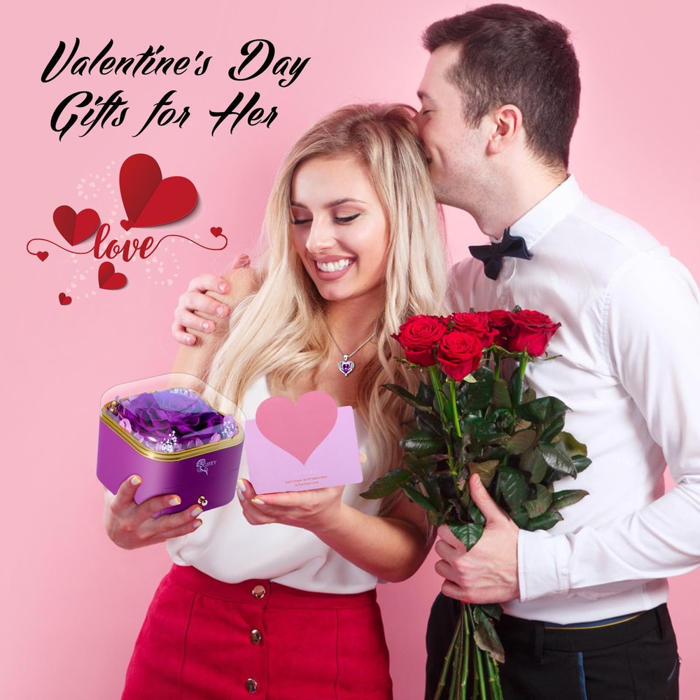 Valentines day gifts,Preserved Real Rose: Preserved real rose are made of 100% real fresh roses. After a unique preservation method, our roses can keep the appearance of flowers for 3-5 years, without watering and management. Preserved real rose with necklace is a creative gift for Valentine’s Day, Anniversary, Mother's day and Birthday. Valentines day gifts for her,Birthday Day Gifts for Women :Preserved Roses are well wrapped in the gift box with a greeting card, so that you could give directly without spend time on package. As an exquisite luxury gift, it can also store other jewelry. The necklace can be worn, and the rose box can be placed indoors as an ornament, Your lover will feel happy every day looking at it. Valentine Day Gifts ,I Love You Gifts for Her, Angel Wings Heart Necklace: classical angel wings-shaped design with shining heart Austrian birthstone crystal. symbolizes eternal love, spirituality and protection.Valentines Day gifts for her, Mom gifts for her birthday, red rose gifts for her, Valentines romantic gifts for her. Valentine Day Gift Ideas,Romantic Gifts for Her :Surprise your loved ones with a stunning forever flower and a shining crystal pendant that will keep the memories alive for years to come. gifts for her, gifts for mom, gifts for girlfriend, girlfriend gifts, cool gifts,gifts for grandma, gifts for wife,gifts for sister and so much more! choose the color they'll love most for their next gift! Great Gift for Women :Eternal rose means eternal love, this product will be the best gift for her. Your anniversary can be romantic and an unforgettable memory.Lovely Gifts for Wife, Mom,Girlfriend, Fiancée, Grandma ,Sister,as Valentine's Day, Mother's Day, Christmas, Thanksgiving, Wedding, Anniversary, Birthday or other Holiday Gifts for Women.