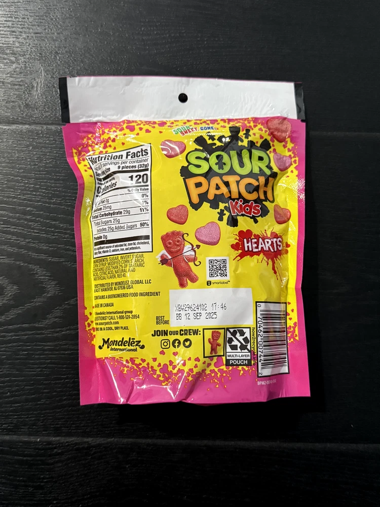 Packaging: Box Number of Servings: 1 Food Aisle: Pantry Brand: Sour Patch Kids Shape: heart Occasion: Valentine's Day Type: Gummy Product: Gummy, Soft Sweet & Marshmallow