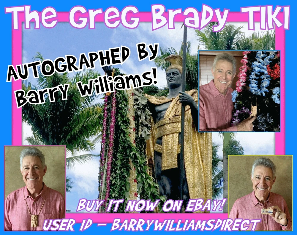 Hello e b a y Friends! Welcome to BARRY WILLIAMS DIREC T on e b a y ! Get a free Barry Williams the Return of Johnny Bravo CD with purchase. Give a gift for the Holiday's that will create memories lasting a lifetime. My Holiday Package Deal includes an autographed Honorary Brady for Life Certificate, autographed 8x10 Photo and an autographed Good Luck Tiki necklace. NOTE: When ordering please specify the name you want on the Honorary Brady for Life Certificate. ** BUY IT NOW ** $120.00 - IMPORTANT ORDERING INFORMATION - After you click on the "Buy It Now" it will bring you to the checkout page. On that page look for the box labeled " MESSAGE TO SELLER ". (This box is located above your name and address.) In that box please specify the name you want shown on the photo. If you don't want a name on the photo then write " SIGNATURE ONLY " Your message will then be attached to your order. For inscriptions, here's some ideas you might like... "Have a Sunshine Day" "Keep On Groovin" "To My #1 Fan" "Stay Groovy" "Happy Birthday" "Get Well Soon" "Merry Christmas" "Congratulations on your_____" "You're Totally Groovy ( first name )" "For the ( Family last name ) Bunch" Stay Groovy! Barry