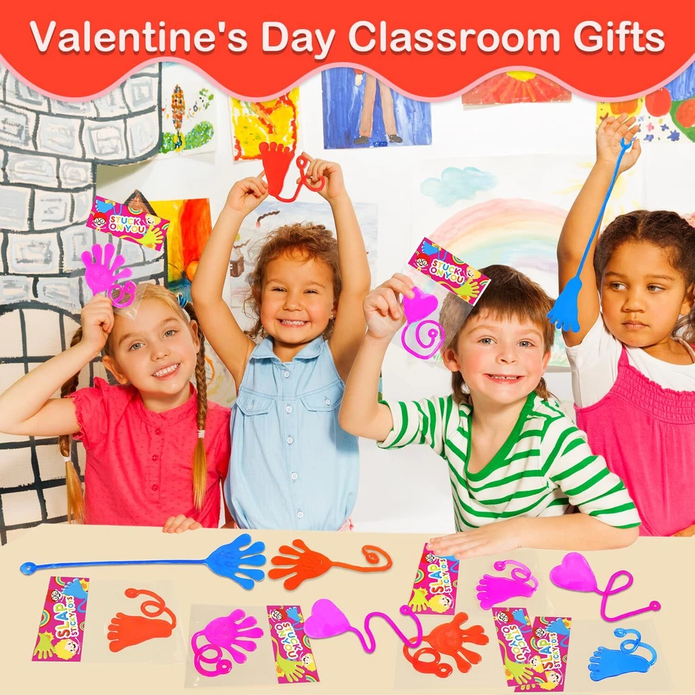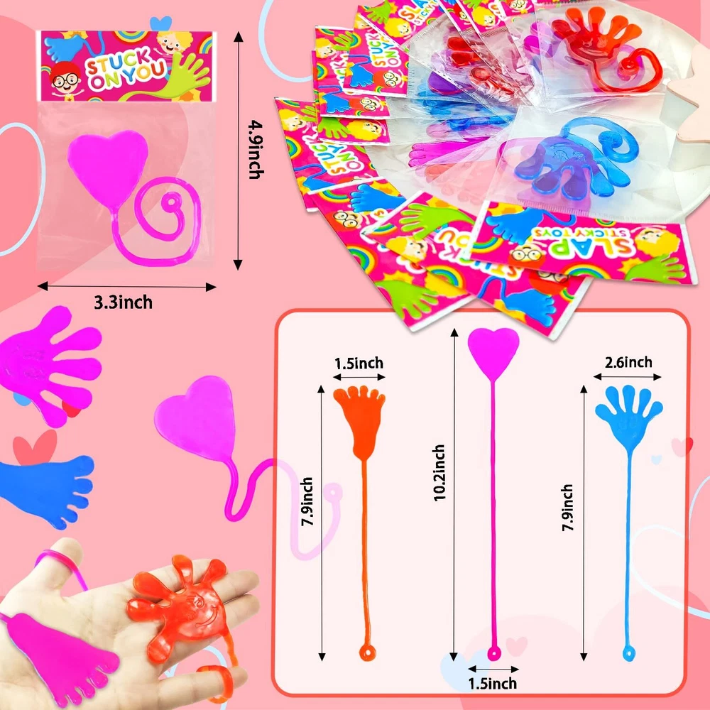 Valentines Day Sticky Hands Party Favors Gifts for Kids School Classroom,48 Pack Sticky Hands,Feet & Hearts Toys for Toddlers,Non Candy Valentines Goodie Bag Stuffers Treats Trinkets Prizes for Class Valentine’s Day Gifts for Kids – This 48-piece set includes slappy sticky hands, feet, and hearts in vibrant colors, perfect for Valentine’s Day exchange gifts for kids, students, and classmates. Valentine’s Goodie Bag Delights – Ideal as non-candy Valentine’s goodie bag stuffers, these fun stretchy toys are perfect for Valentine’s celebrations, classroom exchanges, and party favors. Stretchy & Slimy Fun – Gooey, sticky, and stretchy toys that kids love to toss, promoting coordination and focus. Great for toddlers, school kids, and daycare. Valentine’s Classroom Rewards – Perfect as classroom prizes, treats, or trinkets for boys, girls, and students. These toys make a fun addition to classroom parties. Durable Entertainment – Made from non-toxic, high-quality vinyl for long-lasting fun, ensuring safe play for both boys and girls.