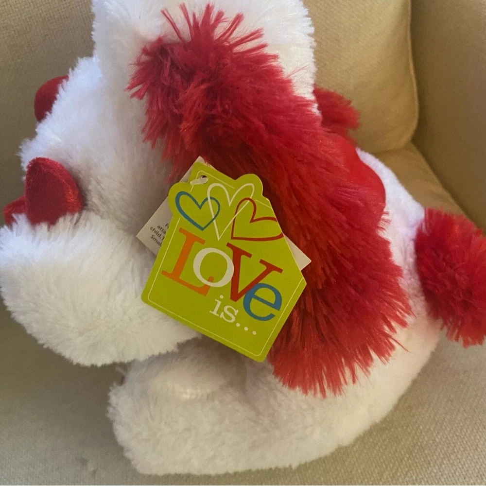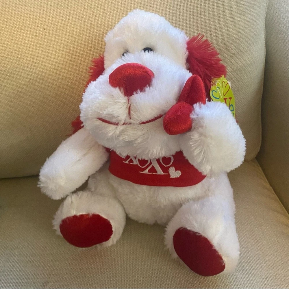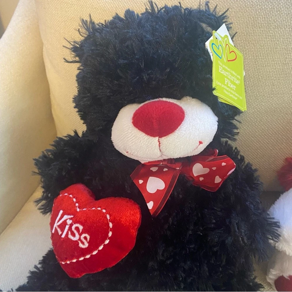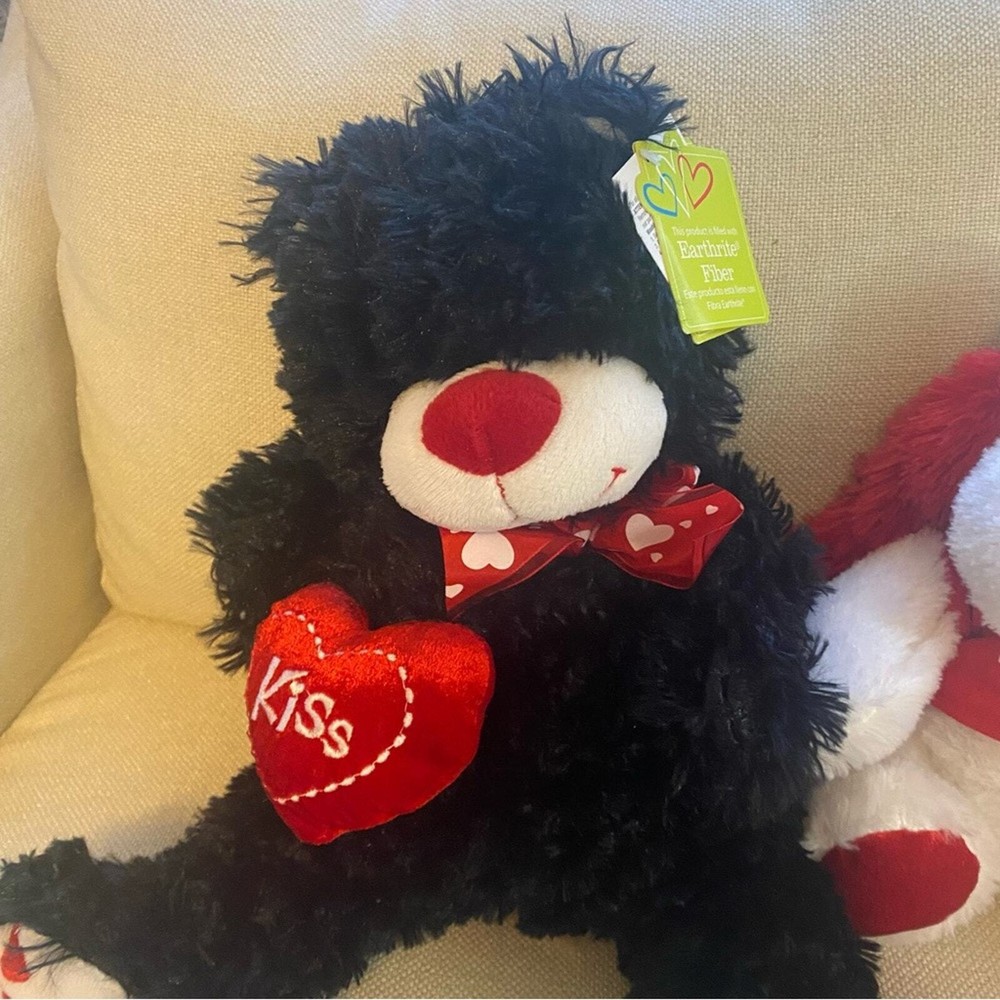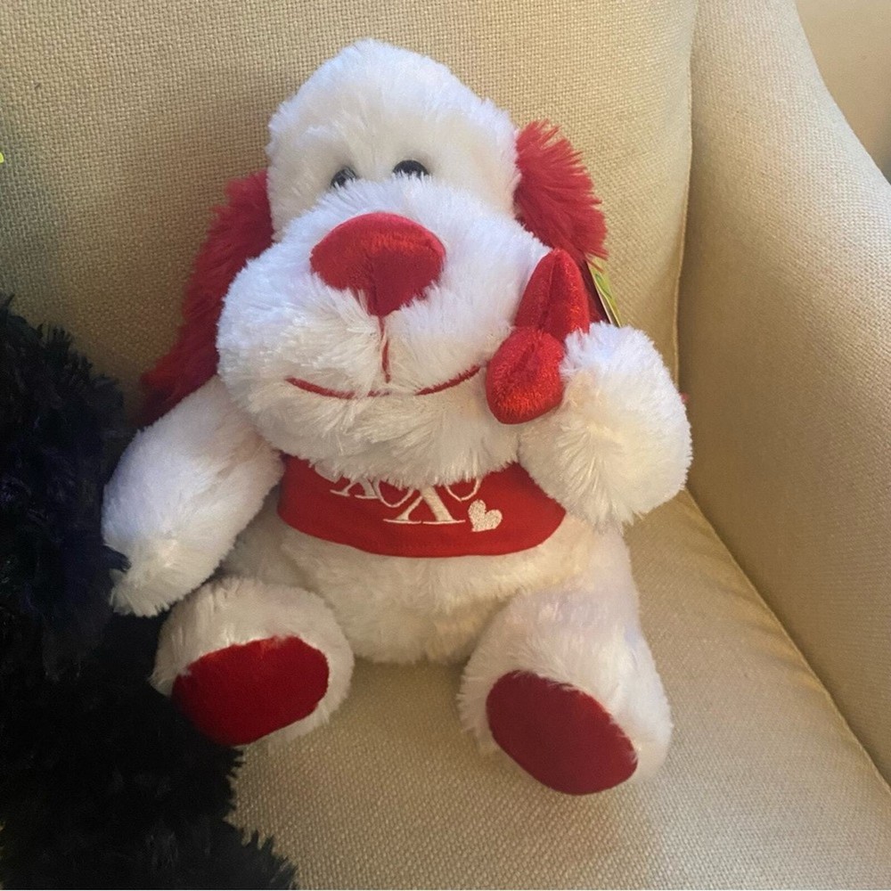 Set of Two Valentine Stuffed Animals Cute Teddy Bear in Black and Red Measures approx 14” long laying (includes legs) New - has tags Made by Dan Dee Collectors Choice Puppy in White and Red Measures approx 9” sitting (does not include legs) New but Tag has writing on (see photo) Distributed by Walmart Never used