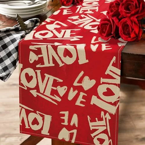 Return Policy Fast Delivery Trusted seller Valentine's Day Love White Table Runner, Red Love Hearts Arrows Scarf Kitchen Dining Table Decor, Wedding Anniversary Holiday Burlap Home Decoration Indoor Outdoor Party Supply 13x72 Inches Product Description Polyester Uniquely Designed Table Runner: Our rustic farmhouse linen tabletop runner adopts the most popular element design nowadays. Use the Valentine's Day themed table decorations we provide to decorate your coffee table, dining table, buffet table and kitchen to express your positive attitude towards life. Printed with red love hearts, white arrows patterns and words of "love", our table runner will be the perfect decor for Valentine's Day High Quality Table Decor: This stylish table scarf is made of 100% spun polyester, durable and eco-friendly. 13" x 72" with exquisite edges. The tabletop tablecloth uses high-definition printing and bright colors are not easy to fade, and it is easy to match your house decoration. Common styles are suitable for spring, summer, autumn and winter Perfect Kitchen Decor: Our table collection is a must-have for parties and dinners. The beautifully-looking burlap table runner can be used as coffee table runner, dresser runner, and be used for dining table, shoe cabinet, and coffee table decoration, which can enhance the festive atmosp at the party and impress your guests. Idea for holiday and housewarming gift Widely Use: The long table runner is suitable for decorating sideboards, tables, buffet cabinets, TV tables, farm tables, coffee bars, buffet tables, dressing tables, making your life unique and elegant. This camino de mesa is not only suitable for daily dining, but also suitable for family gatherings, indoor and outdoor parties on holidays like Christmas Thanksgiving Easter and July 4th, etc Care Instructions: Machine washable, hand wash recommended. Dry on low heat, remove just before it is completely dry to minimize wrinkles, low iron if needed Shipping Returns Payment Shipping Shipping is FREE to all addresses other than APO/PO boxes in the lower 48 states. All our stock ships from US-based warehouses. Shipped via USPS or UPS (depending on location and package weight) Unless stated otherwise, all orders will ship within 24-72 hours of your payment being processed. Check our feedback to see the great reviews of FAST shipping we offer. Returns Seller does not accept returns Payment We currently accept payment via eBay managed payments only. Once payment is cleared, we will dispatch your shipment within 1-3 business days. Please refer to the "Shipping" tab for more information regarding shipping speed to your destination.