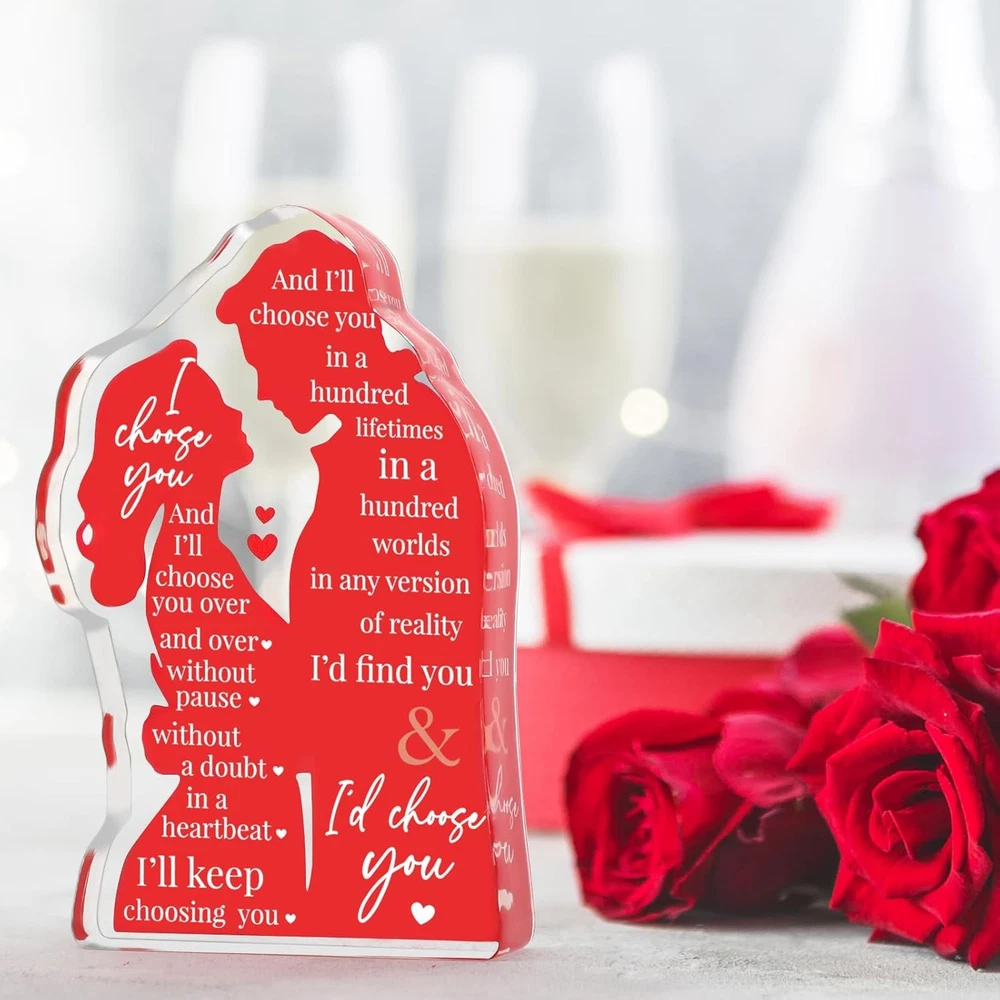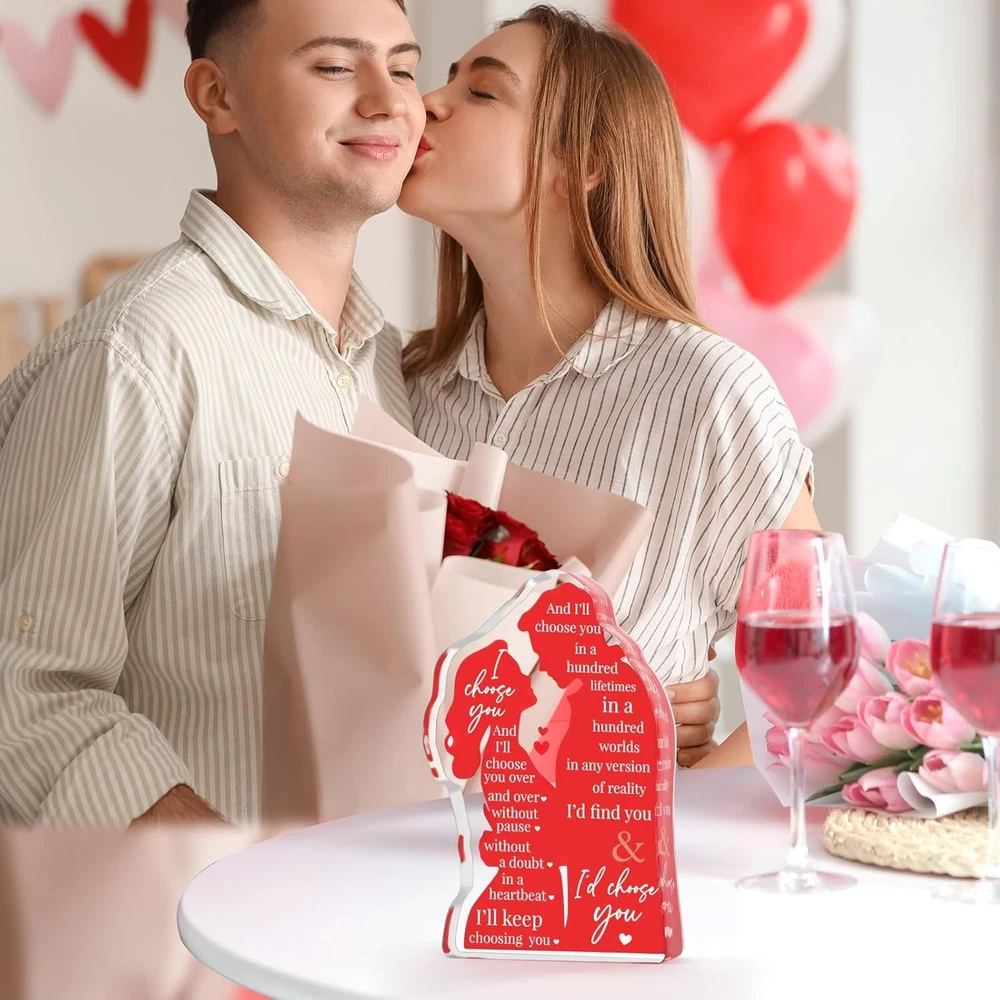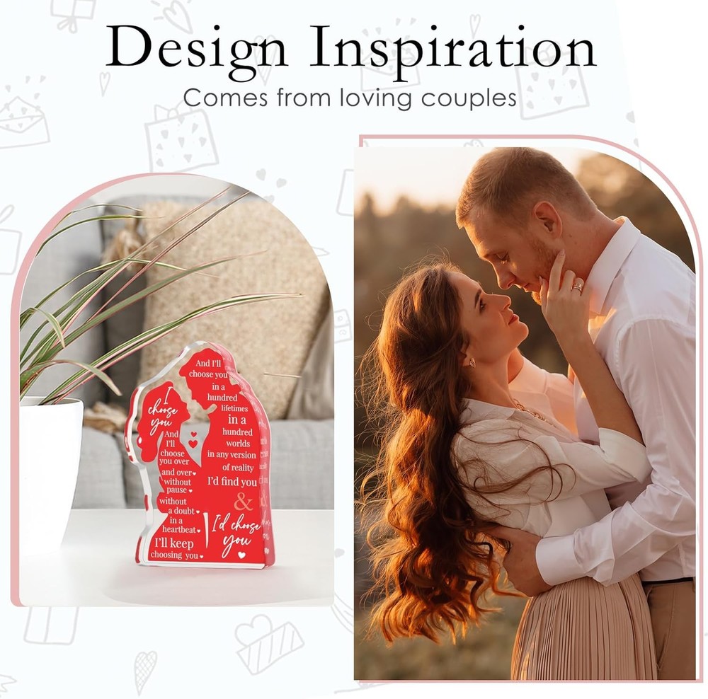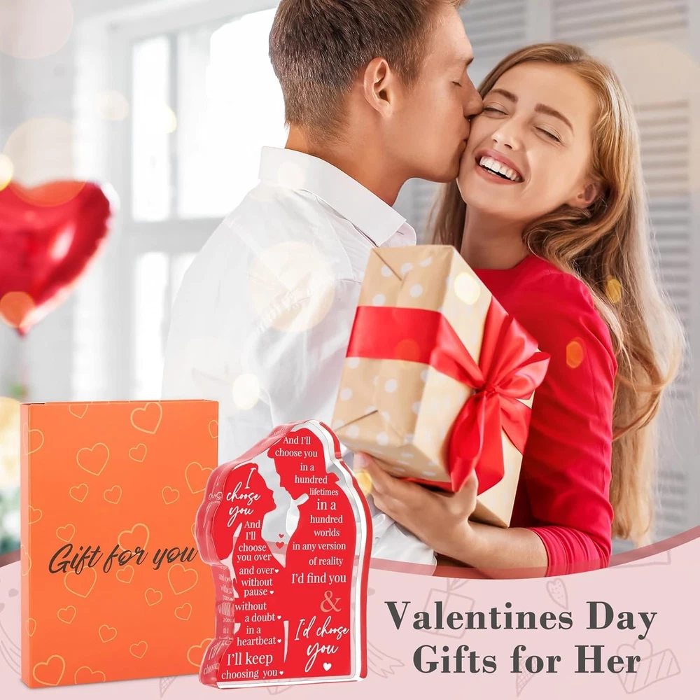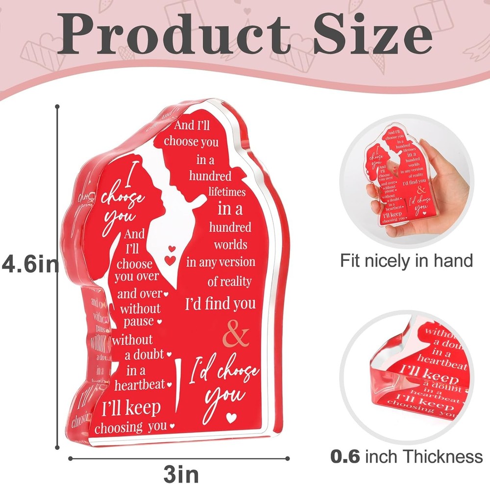 Free eBay listing template designed by dewiso.com Valentines Day Wife Gifts for Him Husband Valentine's Day for Her Girlfriend Couples, Romantic I Love You Gifts Anniversary Wedding Gifts for Couples 2026 Fiance Christmas Birthday Gifts FREE AND FAST SHIPPING! About this item Unique Valentines Day Gifts: acrylic lovers plaque with heartfelt message "I Choose You" is a special way to convey commitment to your lover. It stands out from traditional flowers or chocolates, offering a more personal and lasting expression of affection. Perfect Valentines Day gifts for her/Him Gifts for Boyfriend & Girlfriend: designed into lovers embracing shape in vibrant red color, a symbolizes of heartbeats, intimacy and endless love between couples. Romantic gift for girlfriend on Valentines Day, sentimental gifts for boyfriend Wife/ Husband Valentine's Day Gifts: love is a choice that lasts a lifetime, "I Choose You" plaque is a symbol of eternal love. This small gift will bright her smile on your first year together or decades celebrating, birthday, Christmas, Valentine's Day Wedding Anniversary Gift, Engagement or Proposal Gift: it symbolizes the promise of love, elegant lettering, bold color with a heartfelt messages, brings warmth and romance to any space like wedding reception tables, proposal scene, engagement party, bedroom or office I Love You Gifts for Her: Size 4.6 x 3 x 0.6", made of quality acrylic, smooth surfaces, durable and anti-scratch. Placing it in living room as part of home decor reminders your unwavering love and commitment to each other. A special birthday gifts for wife, cool Valentine's Day Gifts for her Product We offer a 30-Day Return Policy on items which you are not completely satisfied with. You have the option for a full-refund or an exchange of the item. No returns are available on items shipped outside of the US . Shipping We offer Free Shipping to the US and ship within 2 business days of payment, usually sooner. We use UPS express shipping. That's why your products are usually delivered within 3 days . Contact We try our very best to make sure every customer is completely satisfied. If there's a problem , message us! We're happy to help. 24/7 live chat available.