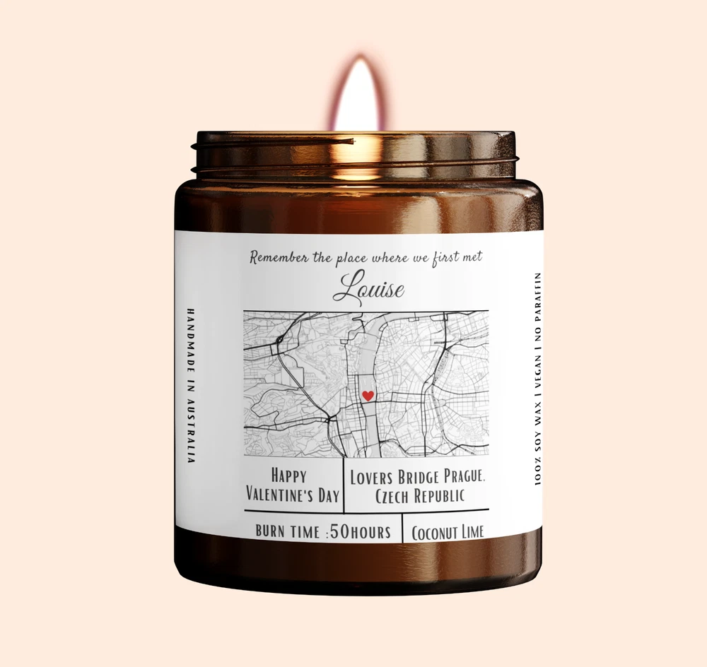 Valentines Day gift | Personalised Valentines Day Candle gift for girlfriend Scented Candle 225g /8oz ~45 hrs to 50 burn time. Our Soy Candle are triple scented and has a long lasting burns up to 50 Hours. Proud to say its handmade in Australia using high grade premium fragrances. ,Highly Scented and Eco Friendly PLEASE MESSAGE ME THE 1. NAME, ie = LOUISE 2. Detailed ADDRESS for the map = ie LOVERS BRIDGE PRAQUE FOR THE PERSONALISATION If any questions please message me anytime. Few can say that their candles are made from 100% soy as many candles in the market are made from soy blend - meaning they contain soy plus additives like paraffin or mineral oil. Industry standard states that if the ingredient is more than 50%, ie 51% soy and 49% paraffin, they can call that a soy candle. Here, you are buying a 100% SOY candle. NO ADDITIVE, NO PARAFFIN. Completely VEGAN, Sustainable and eco friendly. Soy wax is both natural and biodegradable and also burns more cleanly than paraffin wax with less of a soot build up. *Hand-poured with love in New South Wales. *Reusable amber jar vessels. Just wash out with boiling water when your candle has melted to the bottom and repurpose around your home. *Our lid provides you with protection from dust when not in use. The dimensions of this candle are 9cm x 7.2cm with volume of 270ml. CANDLE CARE & SAFETY • Try and burn your candle for at least 3-4 hours the first time you light it. Candles have a burn memory. This will prevent 'tunnelling' and make your candle last longer • Never burn your candle for more than 4 hours at any one time • Trim your candle wick to 5mm every time you use it. This will help the flame from getting too large and reduce unnecessary smoke • Always extinguish your candle if you are leaving your house or heading to bed • Never leave a candle with pets or young children DISCLAIMER: Our candles are inspired by each respective icon/artist, based on personal opinion and online research. We make no claims of affiliation or endorsement with or by any icon/artist. All trademarks are property of their respective owners. Disclaimer: Our candles are inspired by each respective icon/artist, based on personal opinion and online research. We make no claims of affiliation or endorsement with or by any icon/artist. All trademarks are property of their respective owners.