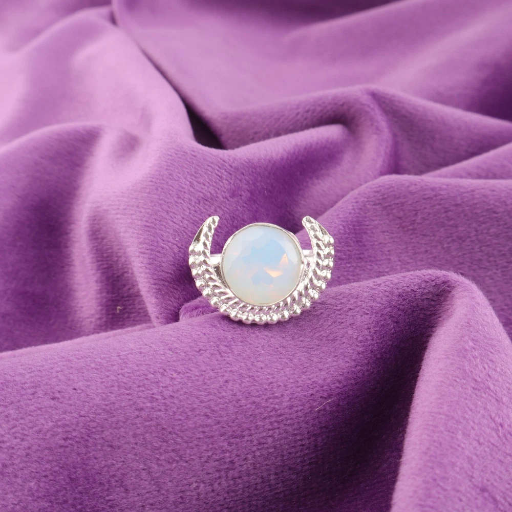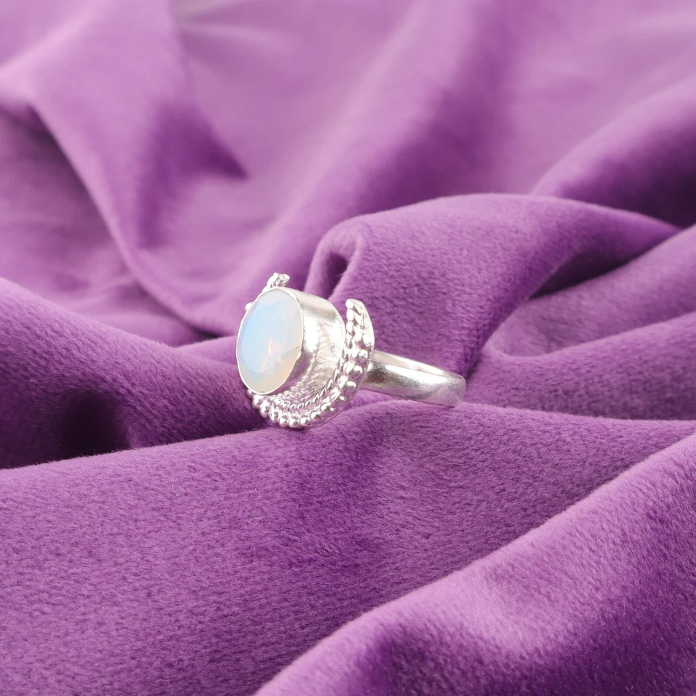 Welcome To Our Shop Gempires ------------------------------------------- Looking for something that complements your Elegant style? Check out this trendy 925 Sterling Silver Milky Opal studded Ring that will elevate your fashion quotient. Valentines Deal Round Cut Milky Opal Stone Band New Ring 925 Silver US All Size Check My Other Ring Listings : Click Here SKU:- RR-48-15 Metal:- Sterling Silver Metal Purity:- 925 Gemstone:- Milky Opal Gemstone Color:- White Gemstone Shape :- Round Gemstone Creation :- Natural Stone Setting :- Bezel Ring Size:- All Size US ___________________________________________________________________ Shipping Handling - Free Standard Shipping all over the world Handling Time - 2 to 5 BUSINESS Days Delivery Time - 7 to 20 Days ( Various on destination ) _________________________________________________________________ Returns - 1.We provide a 100% Money Back Guarantee, excluding shipping costs, within 30 days from the date of item receipt. 2.The item must not be altered or damaged in any way shape or form. 3.Upon receipt of the aforementioned items, your payment will be promptly refunded. 4.Please be so kind as to contact us via email in order to acquire comprehensive return instructions before proceeding with the return of the merchandise. 5.Kindly be advised to allocate a maximum period of 1 business day for the processing of all returns, in order for the appropriate credit to be applied. 6.Sizing does not affect the return policy. _________________________________________________________________ FAQ's - Q.1 ARE THE ITEMS YOU ARE SELLING BRAND NEW? We exclusively offer brand-new products, refraining from the sale of pre-owned jewelry. Our entire jewelry collection is composed of 100% natural, conflict-free pieces. We do not engage in the trade of imitation or lab-grown gemstones and diamonds. Q.2 WHAT ARE YOUR BUSINESS HOURS? we operate 24x7 as we have a dedicated team who works in different shifts to deliver the services to our valuable customers. ________________________________________________________________ Gempires is committed to delivering customers an unparalleled experience through the provision of exquisite handmade jewelry, meticulously crafted to uphold the most exacting standards of quality. Our operations encompass dual roles as both discerning connoisseurs and skilled artisans within the realm of jewelry making. We proudly hold an extensive proficiency in the fine art of enhancing gemstones, allowing us to harmonize them seamlessly with diverse aesthetic inclinations. We are delighted to extend to you the privilege of curating your very own jewelry collection. This collection will be graced by the presence of genuine and splendid natural gemstones, each possessing an innate authenticity and beauty that is truly unparalleled. **** STAY BLESSED ALWAYS*****