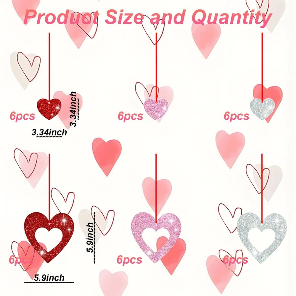 Product Description Valentines Decorations: Do you want an eye-catching happy Valentine's Day party decorations? This hanging hearts decorations are nice and ideal additions for your valentine party and create a romantic atmosphere, highlight your gathering,bring surprise for your loved ones. Grace your valentines day with beautiful heart hanging that can be highlight of your valentines decorations. Make your party night an event to remember. Surprise her/him with a romantic Valentines day and definitely, he/she will love the stunning impact of thisvalentines day decor! What you will get: You will get pack of 36 valentines decorations, 18pcs big hollow hearts and 18pcs small solid hears, with 3 colors red silver and pink heart. Need DIY. Big hollow hearts size 5.9×5.9 inch, small solid hears size 3.34×3.34 inch. High-Quality Materials: This valentines hanging decorations are made of high quality paper, thick and sturdy, double-sided glitter, eco-friendly, lightweight and reusable. Easy to Use: Just strung the glitter heart with the included hanging red strings; you can easily hang them anywhere you want to decorate. A ready to hang as valentines day decorations window, just attach and detach it in the perfect place. DIY Fun: This romantic heart decorations will complete your romantic decorations for special night. You can be used as office room, shopping mall, window display, party decorations in Valentine's Day, wedding, Anniversary, Mother's Day...Express your affection with our charming love heart banner, ideal for celebrations, weddings, or engagement parties. Combined with red silver and pink lovely heart design, adds a pop of color and romance to any space, perfect for valentine's day party, wedding, home decor, engagement parties, anniversaries, birthday, bring a sweet feeling to you and your lover, wish you have a sweet valentine's day party. Add more romantic and sweet touch. 【Valentines Day Decor】You will get pack of 36 valentines decorations, 18 Pcs big hollow hearts and 18 pcs small solid hears, with 3 colors red silver and pink heart. Need DIY. Big hollow hearts size 5.9×5.9 inch, small solid hears size 3.34×3.34 inch. Hang the lovely heart hanging garlands on your party to add more romantic and sweet touch to your valentines decorations. 【High Quality Materials】This valentines hanging decorations are made of high quality paper, thick and sturdy, double-sided glitter, eco-friendly, lightweight and reusable, can hang for serval days. When the party is over, you can take them down and store for next time use. 【Suitable for Many Occasions】The vibrant red, pink and silver hearts of the garland adds a pop of color and romance to any space. A great ideal choice for adding a romantic touch to your Valentine's Day celebration. Perfect for hunging from branches and ceilings, or open against a wall, hanging up dessert tables, backdrops, and the overall party space,the adornment of the integral collocation of color is also very perfect place you want to decorate. 【Easy to Use】Just strung the glitter heart with the included hanging red strings; you can easily hang them anywhere you want to decorate. When you hang them in your windows, these Heart Valentines garland will spin with the breeze and look amazing. 【Express Your Love】This romantic heart decorations will complete your romantic decorations for special night. You can be used as office room, shopping mall, window display, party decorations in Valentine's Day, wedding, Anniversary, Mother's Day...Express your affection with our charming love heart banner, ideal for celebrations, weddings, or engagement parties.