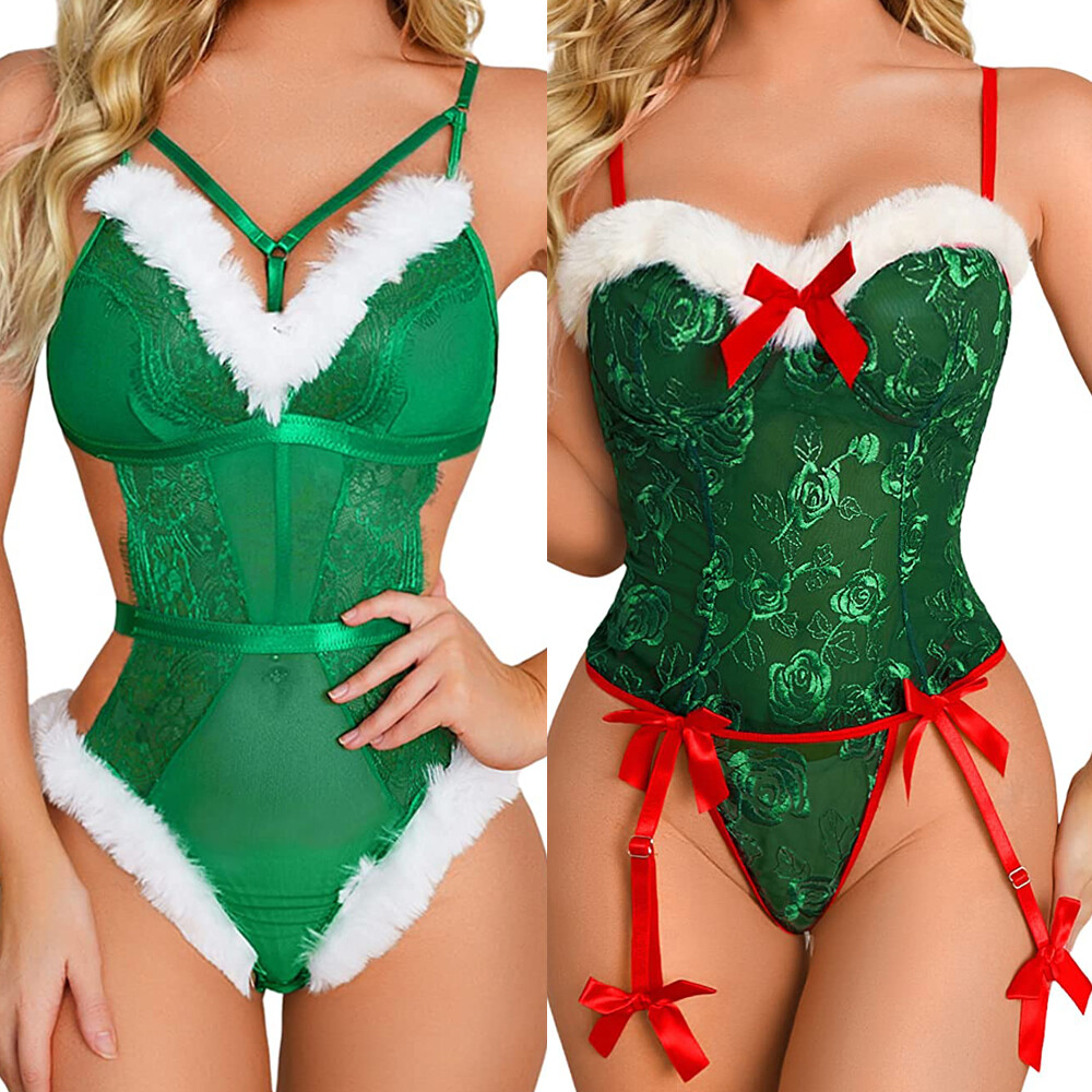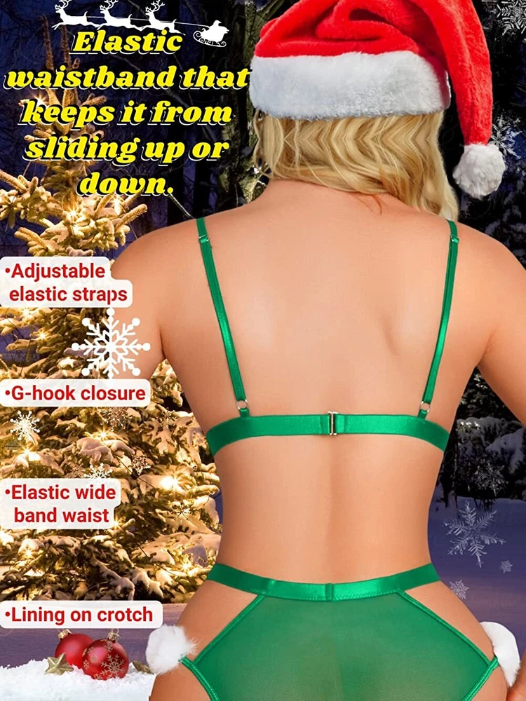 About this Item: 【Top】Wireless / Stretch Bra / Unlined / Adjustable Elastic Straps 【Waist】Elastic Wide Band Waist / Irregular Cut Patterns Design 【Bottom】Snap Crotch / Lining On The Crotch 【Don't Miss】Matched with thigh highs and a Santa hat for christmas costume. 【Occasion:】For Christmas Dress Up, a simple fun costume, a feathery night and great prop for a holiday photoshoot.