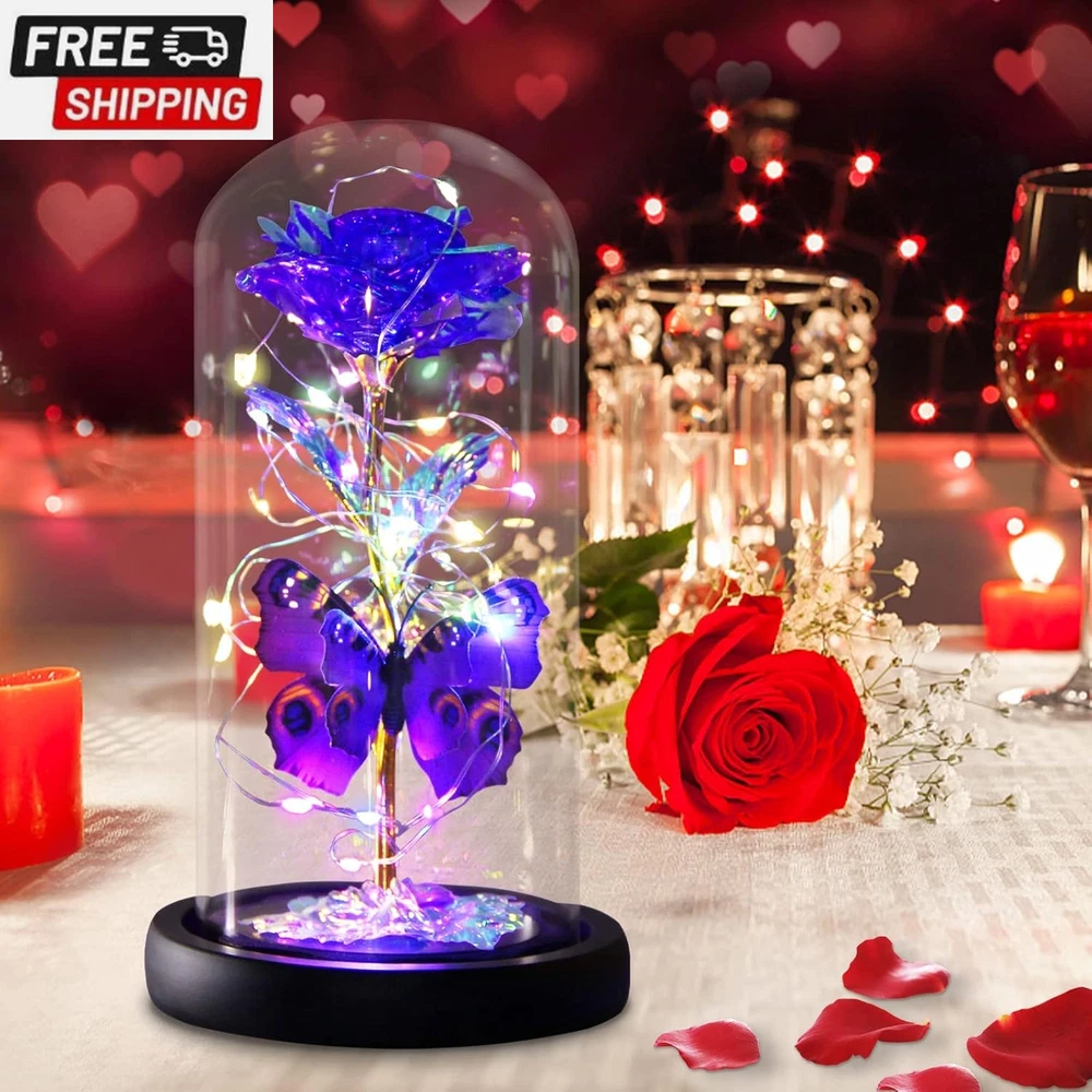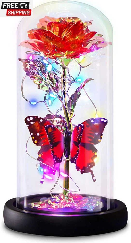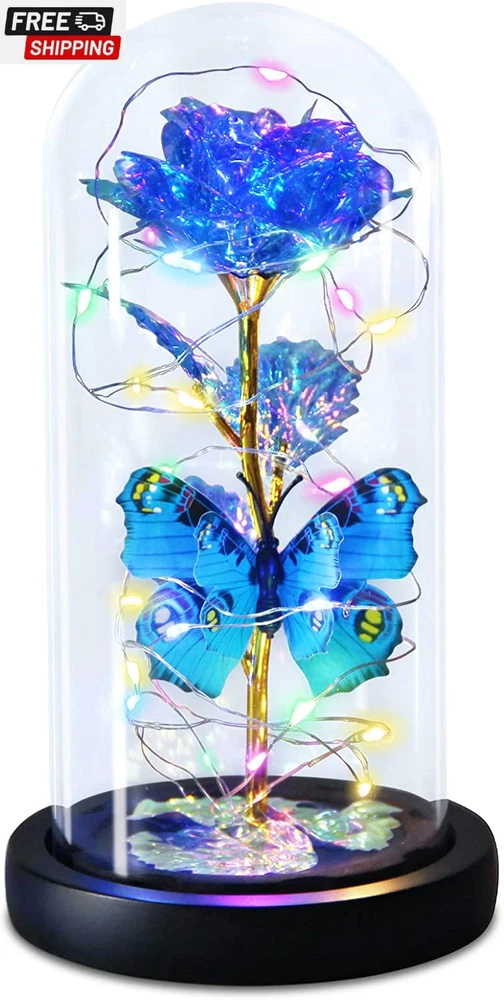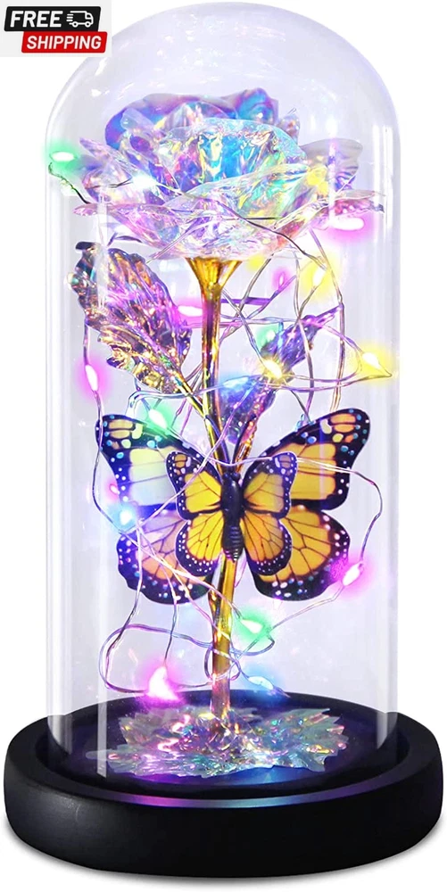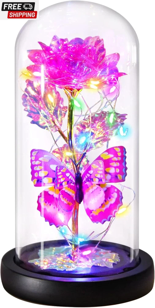 Valentines Rose Gifts for Her Thanksgiving Christmas Flower Gifts for Women, Galaxy Purple Butterfly Rose in Glass Dome, Light up Forever Rose Birthday Gifts for Mom Anniversary Eternal Rose Gift Light Up Rose Gifts for Her, Christmas Flower Light Gifts for Women 💝 Valentines Day Flower Gifts for Her: Purple eternal rose symbolize wisdom, a deep passion and mature romance. Each unique designed purple butterfly is different, just for her, for your special loved one, tug at her heartstrings. Perfect as birthday gifts for women, valentines gifts for girlfriend, mothers day gifts for mom grandma, anniversary gifts for her, wedding gifts, Christmas gifts, womens gifts, giving her a love surprise, tell her "I love you" with eternal rose flower present. 💝 Unique Glass Rose Gifts for Women: Nothing gets the romance flowing like glass eternal rose. With Highly transparent glass, 360° shows timeless and elegant of roses completely. Upgraded 2022 removable glass dome, allow you displaying your creativity to DIY, which can touch her heart deeply. Eternal rose witness everlasting love, amazing gifts to express and promise your love to your girlfriend, wife, fiancee, daughter, mother, grandma, sister, teacher, friend and even yourself. 💝 Elegant Valentines Decor Night Light: The purple glass rose is not only beautiful valentines dating decorations , birthday decorations, wedding decorations, but also a warm night light. In the sunshine, purple rose and butterfly are gorgeous, making the living room, bedroom, office, wedding hall, birthday party or holiday scenes filled with magic and life. At night, the purple rose is surroundred rainbow lights, accompany her to sleep peacefully. (Powered by 3 AAA batteries (not included)) 💝 Gifting Made Easy: A meaningful gift, an unique love. A glass rose gift is ready to give her comes in a elegant blue gifts box. Writing the words of blessing and love in the exquisite greeting card, image her face lit up, her sweet smile will be remembered and treasured forever! Best gifts for girlfriend, friendship gifts for women, valentines day gifts for wife, beauty and the beast rose gift, Mothers day, birthday gifts for mom grandma, Valentines rose gifts for gf. Product Description Valentines Day Gifts For Her - Galaxy Purple Rose in Glass Dome. I love you gifts for girlfriend, love gifts for wife, gifts for mom, gifts for grandma, gifts for daughter. The Best Gift Idea for Mom, Mothers Day Gifts from Daughter, Son and Husband. " Happy Mother's Day! I LOVE YOU! " All glory and pride in the world are from mother. Mother's love for children is greatest in the world. On her day, give this light-up eternal rose to Mom and say "Thank you, I love you!" Great Mothers day gift ideas for mom, wife, grandma, mother-in-law. This galaxy purple rose is fixed on the most beautiful moment, with unique patterns butterfly and rainbow color led string lights on it, it will be never-fading. A beautiful gift for confession of love A Love Gift for Her, Valentines day gifts for woman, valentine gifts for her, mother's day gifts, mom gift from daughter and son, long distance relationships gifts, wedding gifts for couple, romantic valentines gift for wife, birthday gifts for women, grandma gifts, sister gifts, wife valentines day gifts, Christmas gifts, anniversary gifts, wedding gifts, thanksgiving gifts for women ... The rose that can be collected for a lifetime! The rose is fixed in the most beautiful moment, and will accompany your loved one forever. Each product can represent your sincere heart. If your loved one likes ‘Beauty and the Beast’, this is the best gift choice. Every butterfly is unique with different nice patterns, means you are the only one! The glass dome can be fixed or removed, you can open it, add in your own little ornaments, and re-wind the led lights string to be the shape you want. The glass rose with butterfly lights is packed in beautiful gift box with a greeting card. You can directly send this ideal gift to her. This is the best gift choice for your loved. Rose decoration The roses are very beautiful wherever they are placed, bringing a beautiful and romantic visual experience. Valentines day decor / Dating decor / Happy Mother's Day Celebrating / Christmas decor / party decoration / birthday cake decor / table decoration / wedding decor / living room decor / Girls bedroom decor / dressing table decor / candle dinner decor / romantic Proposal scene decor You can DIY Open the glass dome and add a little creativity of your own to make the rose different and more meaningful! Shipping Fast shipping is very important for us. Our standard US shipping service is FREE. Your order will be shipped within 2-3 business days upon full payment received. Your order will be delivered within 2-3 business days after the handling time. We only ship to the confirmed PayPal address. We reserve the right to cancel any order for any reason at any time. We are not responsible for undeliverable addresses. Returns and payment We offer a 30 days return policy from checkout winning date. We allow only PayPal as payment method FeedBack Your feedback very important to us, after you get your package and you are satisfied with our service please leave us positive feedback If you have any problem with your order / any questions please before leave any type of feedback For any questions, using eBay contact system Please visit our eBay store to check out other items for sale! Thank you for shopping at our store.