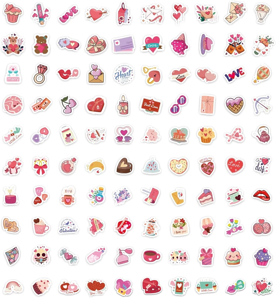 Valentines Stickers - Valentines Day Gifts for Kid - 100 PCS Vinyl Heart Sticker