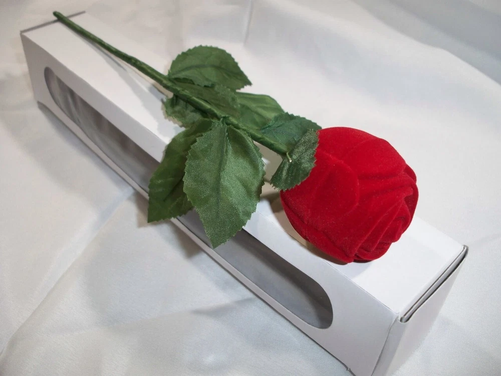 Brand new and high quality Its special design will make you look unique It is a good gift for your lover, family, friend and coworkers Material: velvet Length: app 4.0cm/1.57'' Dia: app 4.0cm/ 1.57'' Package including: 1 pc rose velvet ring box (The ring and earring are not including, the rod and stem are not included)