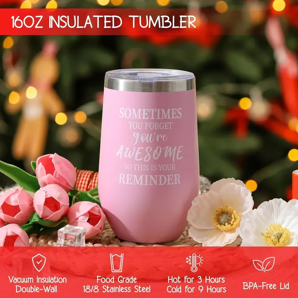 đăHeartfelt Valentines Day Gift for Heră The meticulously curated gift boxes are devised to forge a memorable and delightful day, bringing a beaming smile. Ideal for demonstrating your abundance of love and appreciation. Excellent gifts for wife, mom, grandma, girlfriend, daughter, sisters, friends, teachers, colleagues, and more. Great womens gifts for Valentine, Valentines Day gifts for women wife girlfriend đăStress Relief Spa Gift SetăTreat your loved ones to the ultimate relaxation experience with our spa gifts for women. Immerse her in the serene aromas of sea salt, bath bomb, and soy wax candle. Crafted from natural ingredients, including 100% soy wax and essential oils, allow her to indulge in a rejuvenating spa retreat that soothes the senses and revitalizes the spirit đăRadiate Love and Warmth Valentine Gift BoxăThe premium 16oz vacuum-insulated coffee cup is crafted from 18/8 food-grade stainless steel, ensuring her favorite beverage maintains the ideal temperature. Paired with soft fuzzy socks and adorned with a heart-shaped box of preserved rosesâan expression of everlasting love đăGifts for Women on Any OccasionăMake her day brighter and unforgettable! The gift box labeled "A box full of love,", the coffee mug is embellished with the message "SOMETIMES YOU FORGET YOU'RE AWESOME", showing love, thoughtfulness and a warm reminder to inspire her. Great gift baskets for women for any occasions on Valentine, Christmas, birthday, Mothers Day, thinking of you, get well, thank you, I love you, anniversary, retirement, Thanksgiving, and more đčăCharming Scented Roses Soap BoxăIndulge in the delicate charm of our Scented Roses Box! Crafted in the likeness of a real rose and nestled within a charming heart-shaped gift box, it's a beautiful decoration to add a touch of romance to any room without the concern of wilting. Paired with a greeting card that serves as a heartfelt conduit for conveying sentiments of love and joy đăConvey Happiness and AffectionăEach item is carefully selected to delight, including a pink gift baskets, 16oz insulated coffee mug, fragrant soy candle, preserved roses in a heart-shaped gift box, scented sea salt, scented bath bomb, snug fuzzy socks, gift card. Valentines Day gifts for her, birthday gifts for women, Mothers Day gifts, get well gifts for women, thank you gift, I love you gift, anniversary gift, retirement gifts