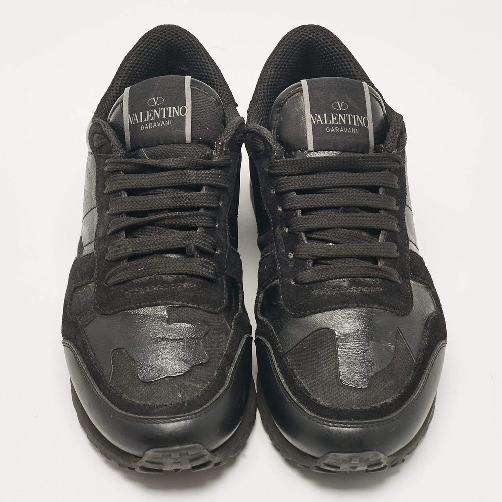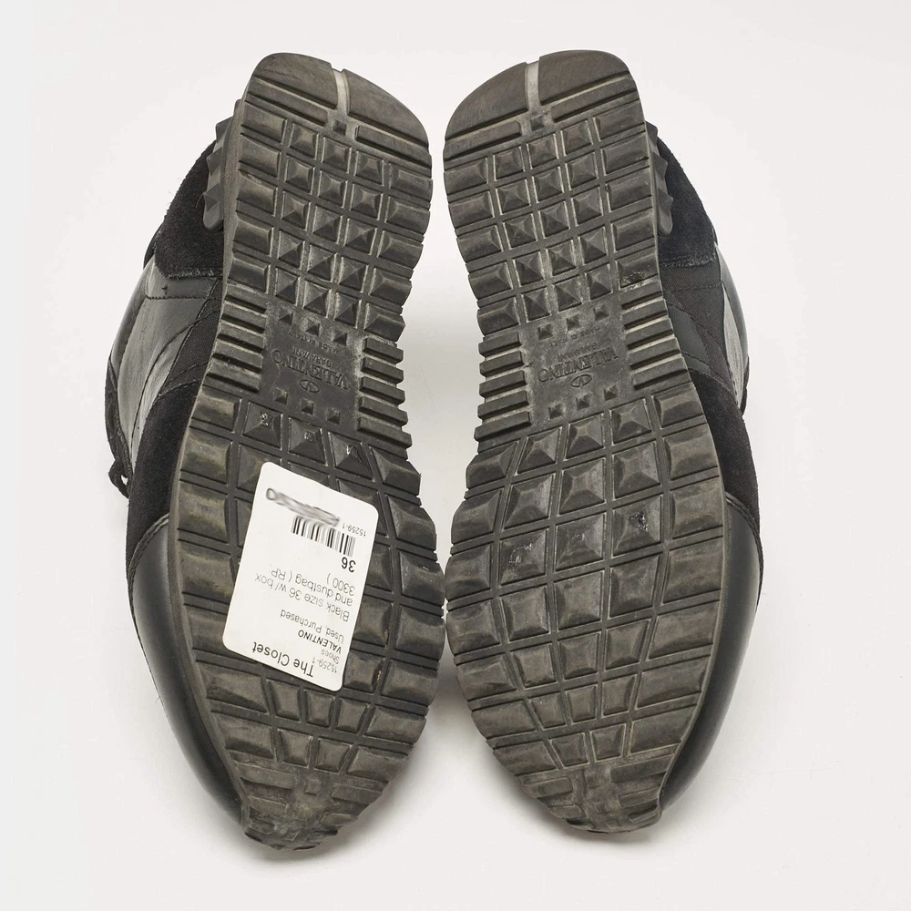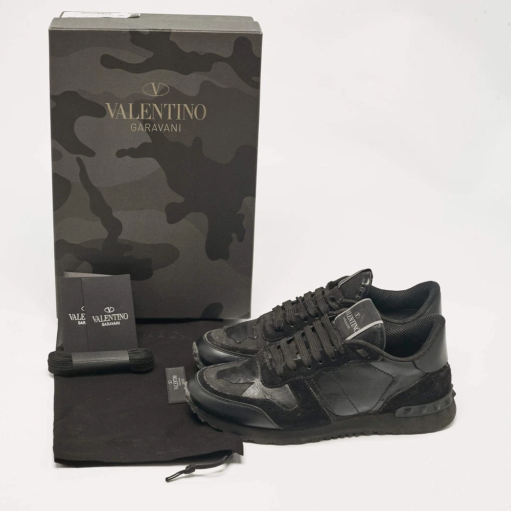 Valentino Black Leather and Suede Rockrunner Low Top Sneakers Size 36