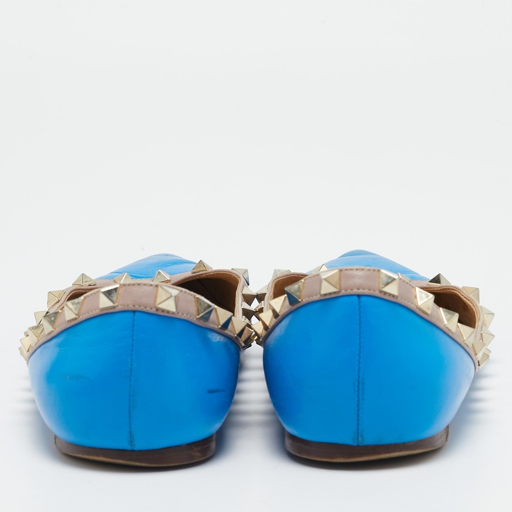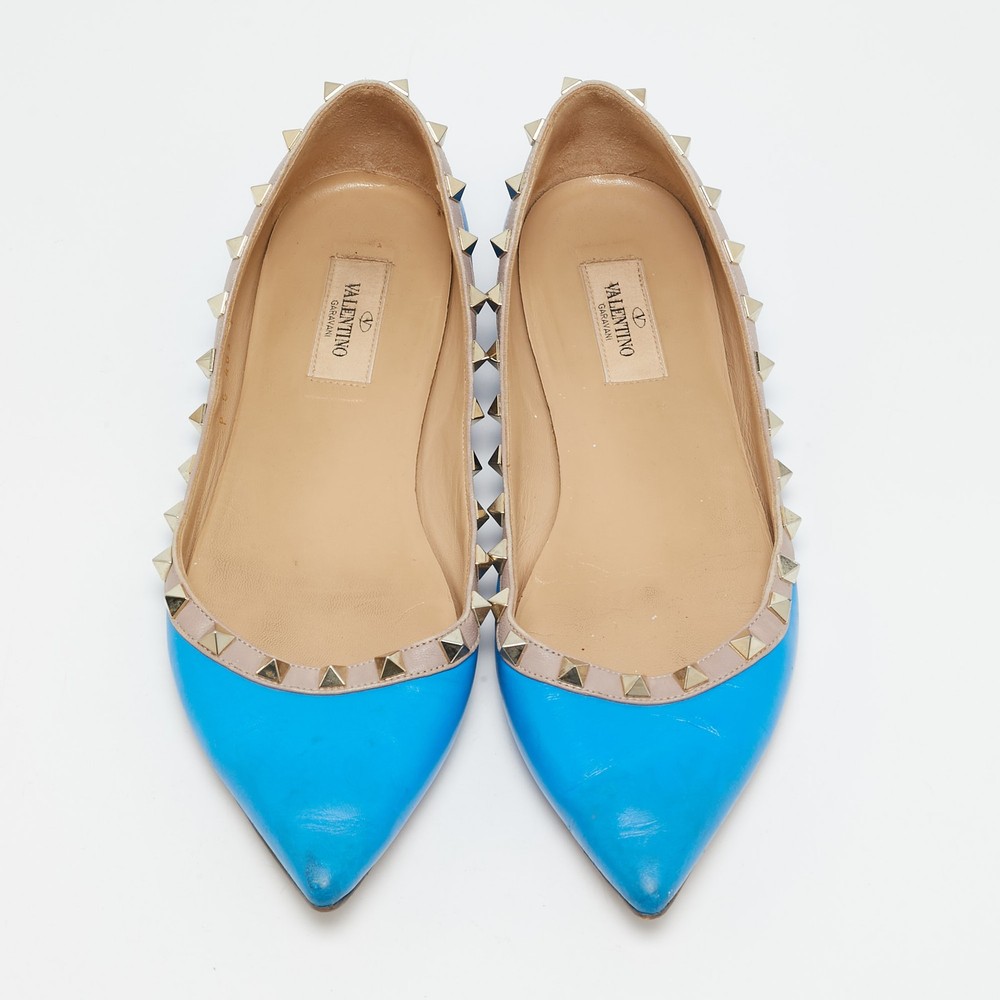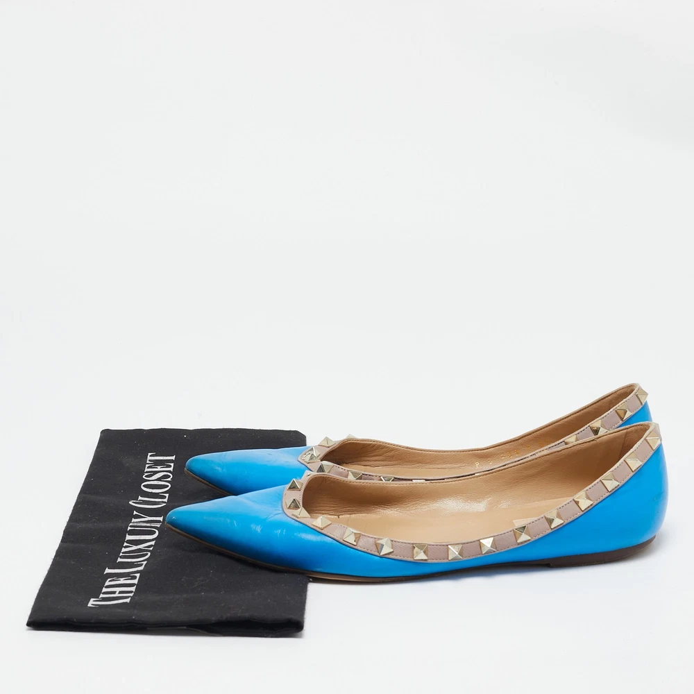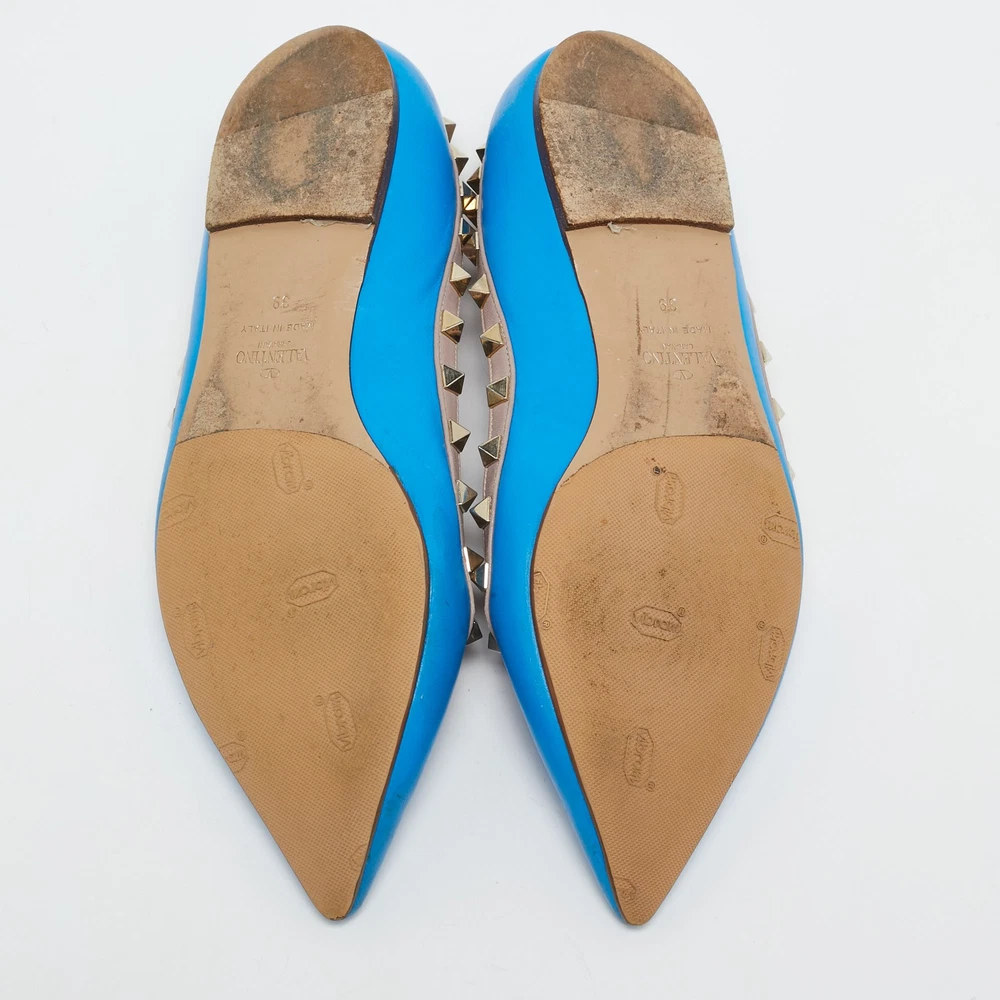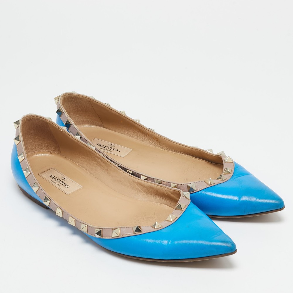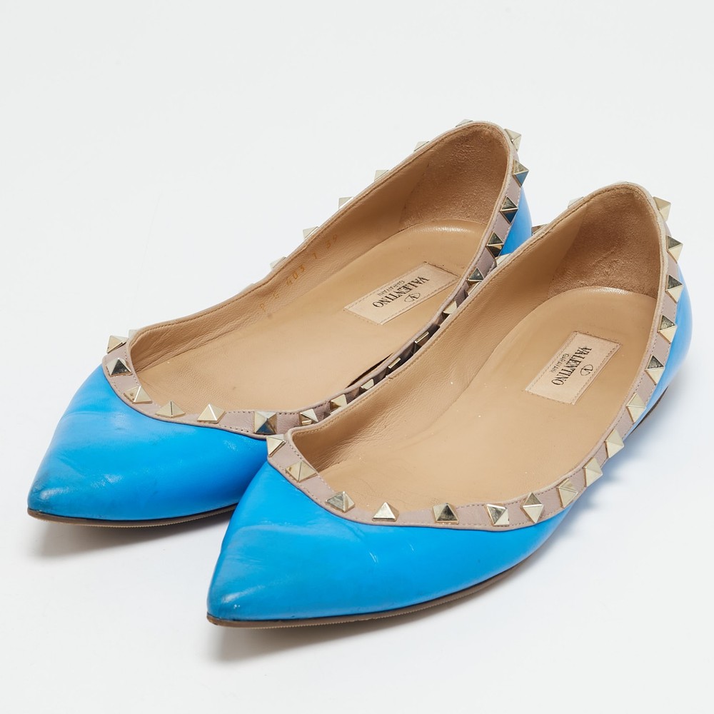 Combining delicate grace with signature edge, these Valentino ballet flats are crafted from smooth blue leather and accented with gleaming Rockstud trim. Their elegant pointed toe and low profile design make them the ideal balance of comfort and couture flair.Certified by The Luxury Closet - This item has gone through a detailed authentication process overseen by our experts. We offer a lifetime guarantee of authenticity on all our items. Import duties, taxes and charges are not included in the item price. These charges are the buyers responsibility. Please check with your country’s customs office to determine what these additional cost will be prior to buying. Our eBay Store About Us Contact Us Add to Favorite Sellers Valentino Blue Leather Rockstud Ballet Flats Size 39 $210.1 Combining delicate grace with signature edge, these Valentino ballet flats are crafted from smooth blue leather and accented with gleaming Rockstud trim. Their elegant pointed toe and low profile design make them the ideal balance of comfort and couture flair. Product Details Brand Color Blue Dimensions Material Leather Size 39 Outsole Width Outsole Length Heel Height Includes Certified by The Luxury Closet This item has gone through a detailed authentication process overseen by our experts. We offer a lifetime guarantee of authenticity on all our items. How We Check The in-house team of experts at The Luxury Closet is highly trained to verify the authenticity and the condition of the luxury products. They ensure that only 100% authentic items are put on sale.The evaluation process is unique with its own mix of assessment criteria and differs according to the category. Each item is evaluated based on the following combination of hallmarks, hardware, stitching, symmetry, material, craftsmanship, stamping, codes, hologram stickers, and packaging. Our authenticators also check if the items have been modified or amended (e.g., aftermarket diamonds, replaced batteries, repaired bags, etc.) International Buyers Import duties, taxes and charges are not included in the item price. These charges are the buyers responsibility. Please check with your country’s customs office to determine what these additional cost will be prior to buying.